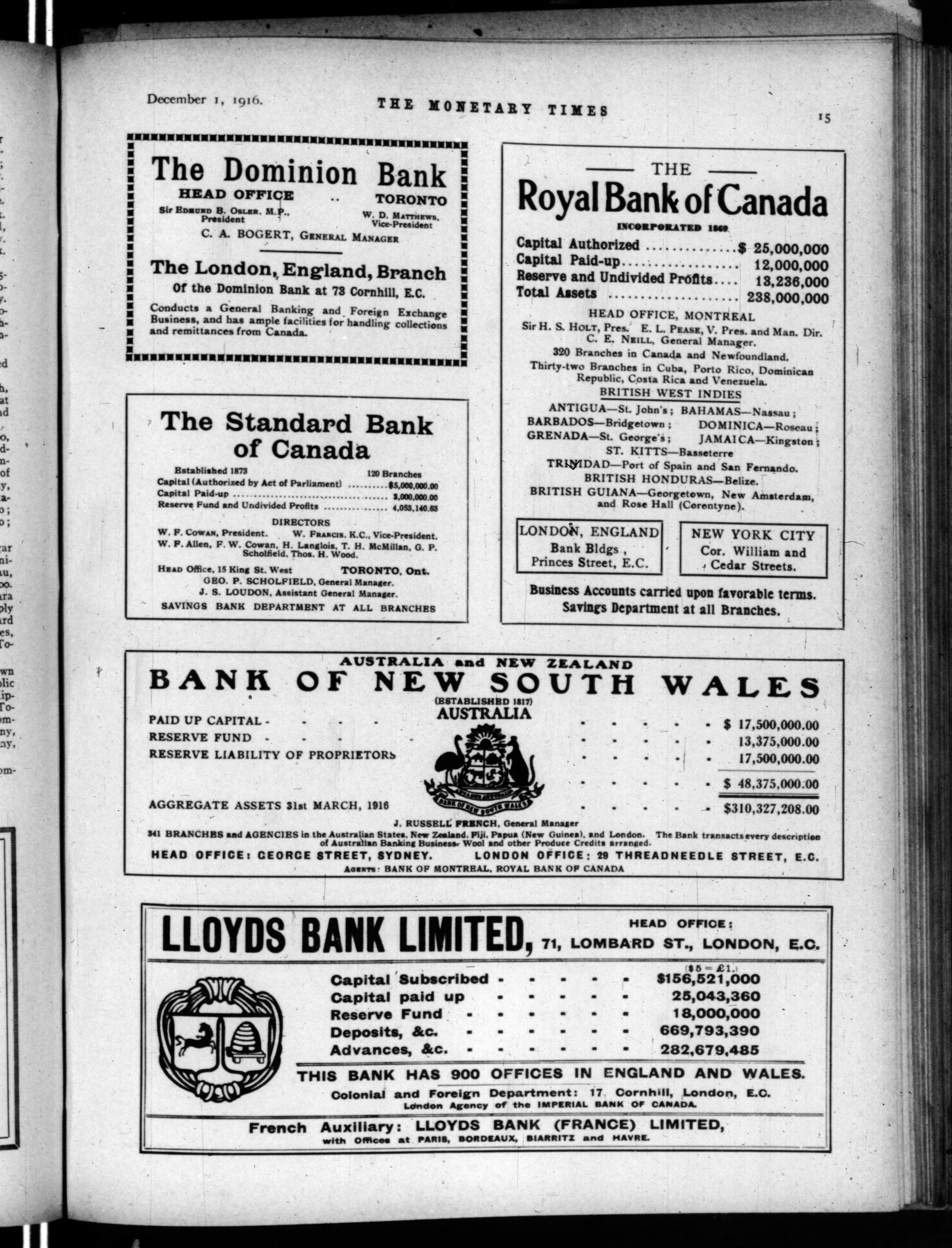 The monetary times, trade review and insurance chronicle : Volume 57, No. 22 (December 1, 1916)