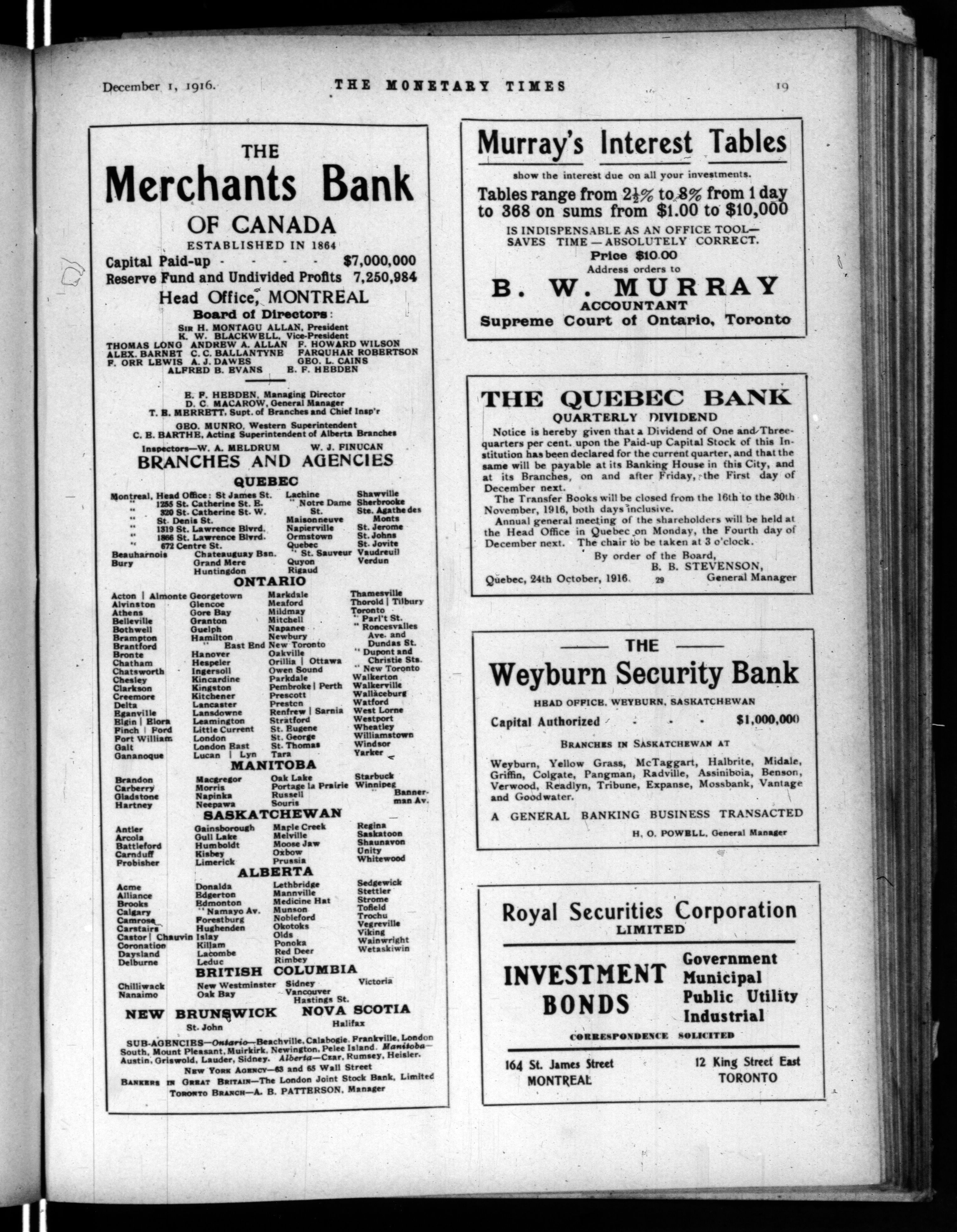The monetary times, trade review and insurance chronicle : Volume 57, No. 22 (December 1, 1916)