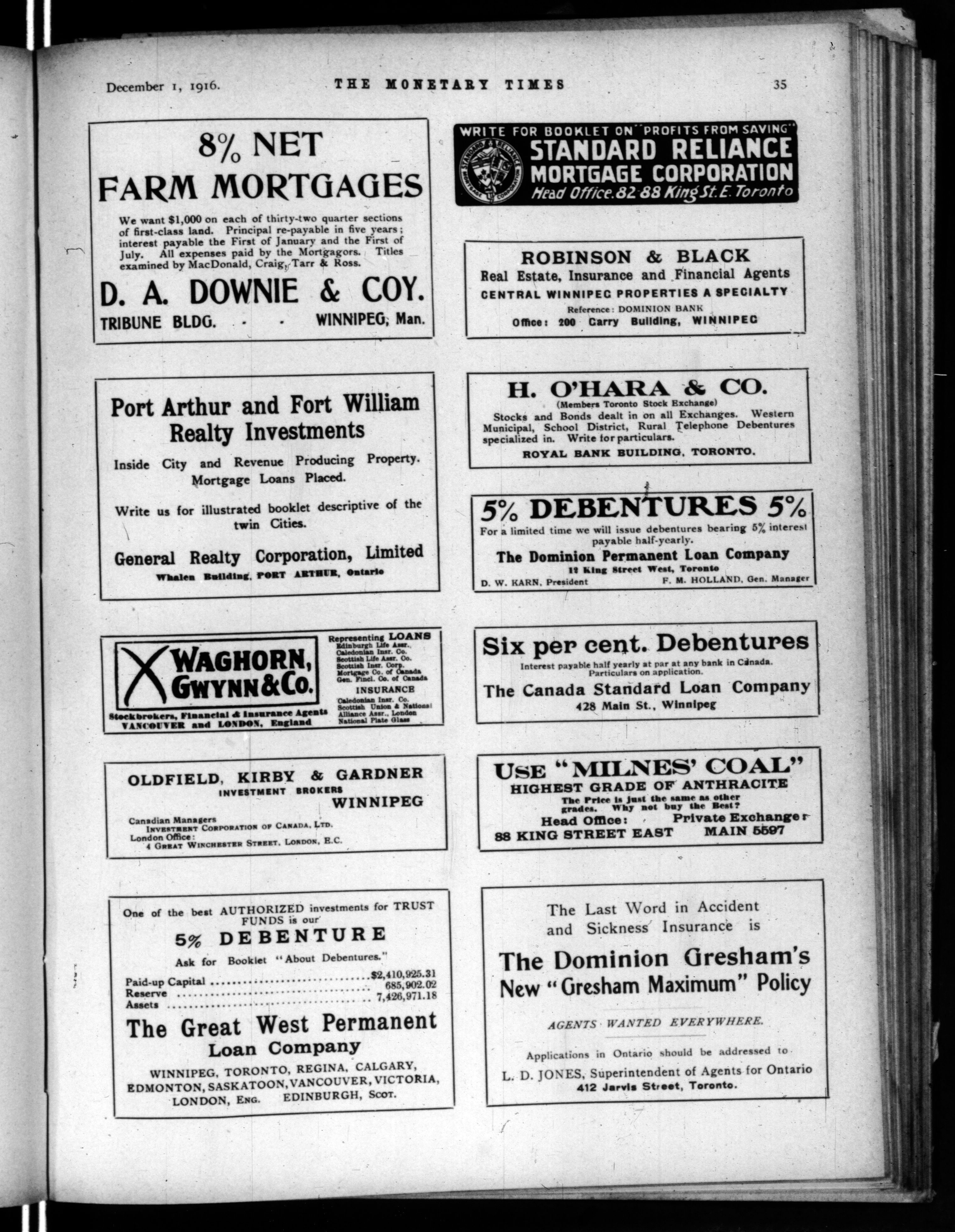 The monetary times, trade review and insurance chronicle : Volume 57, No. 22 (December 1, 1916)