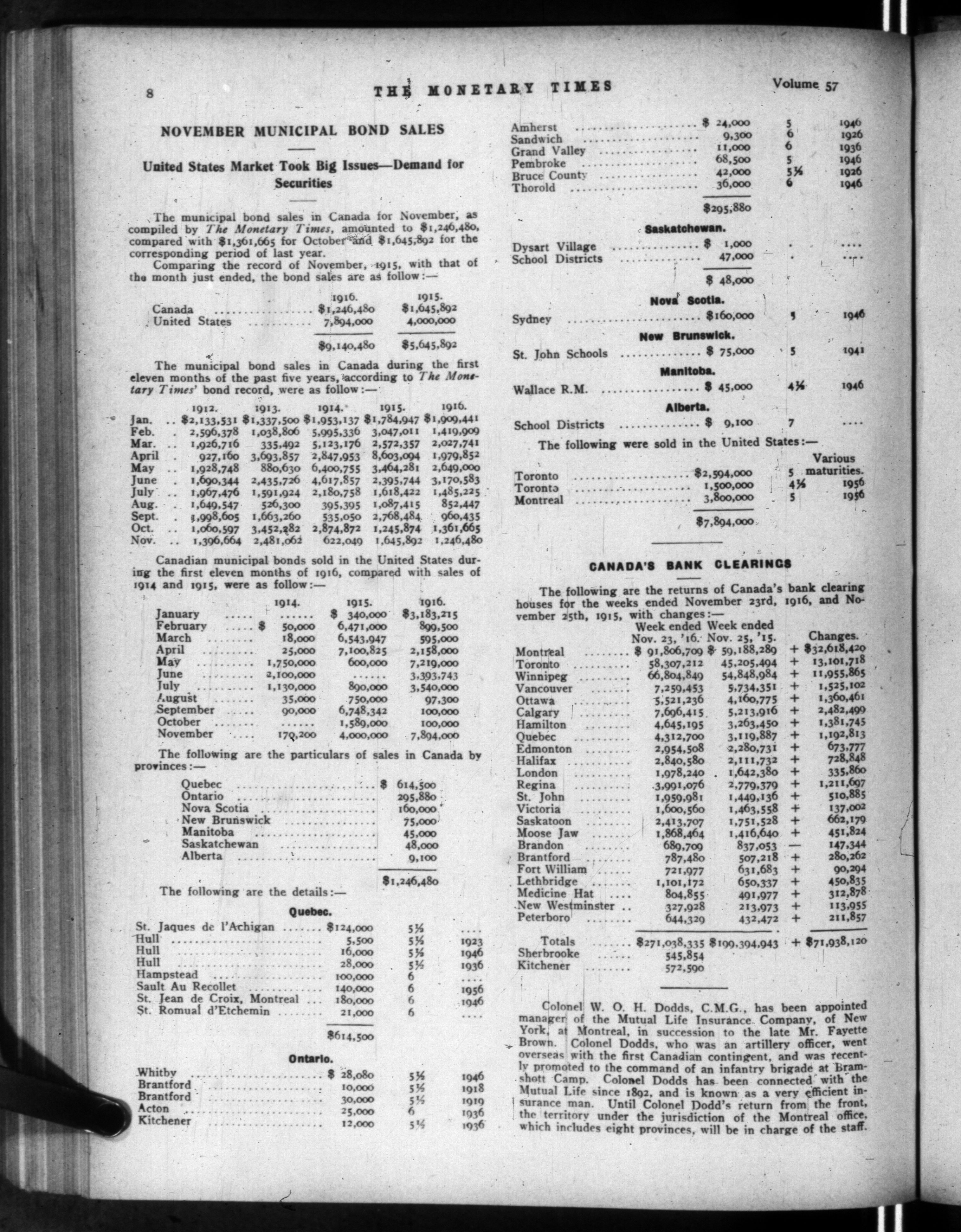 The monetary times, trade review and insurance chronicle : Volume 57, No. 22 (December 1, 1916)