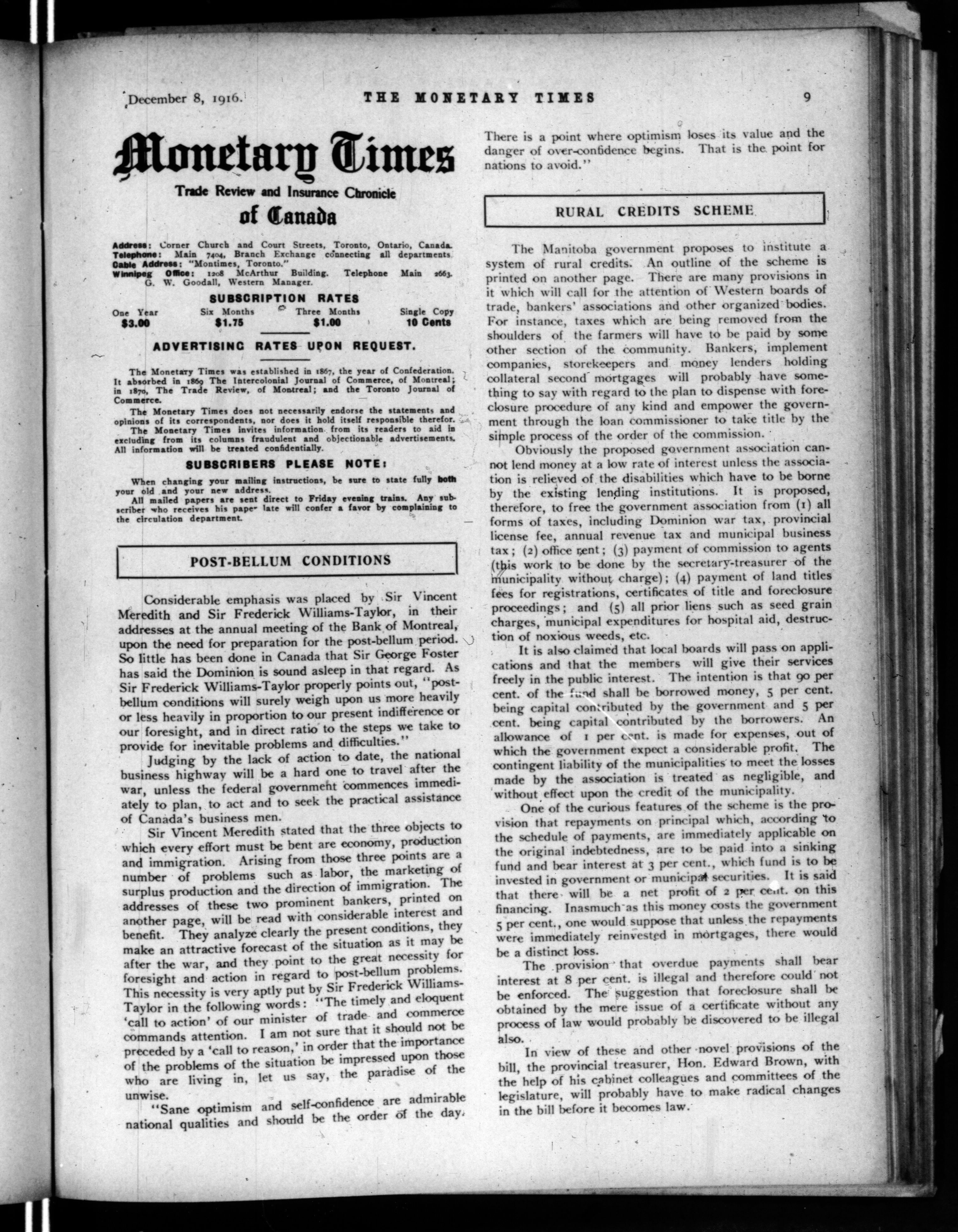 The monetary times, trade review and insurance chronicle : Volume 57, No. 23 (December 8, 1916)