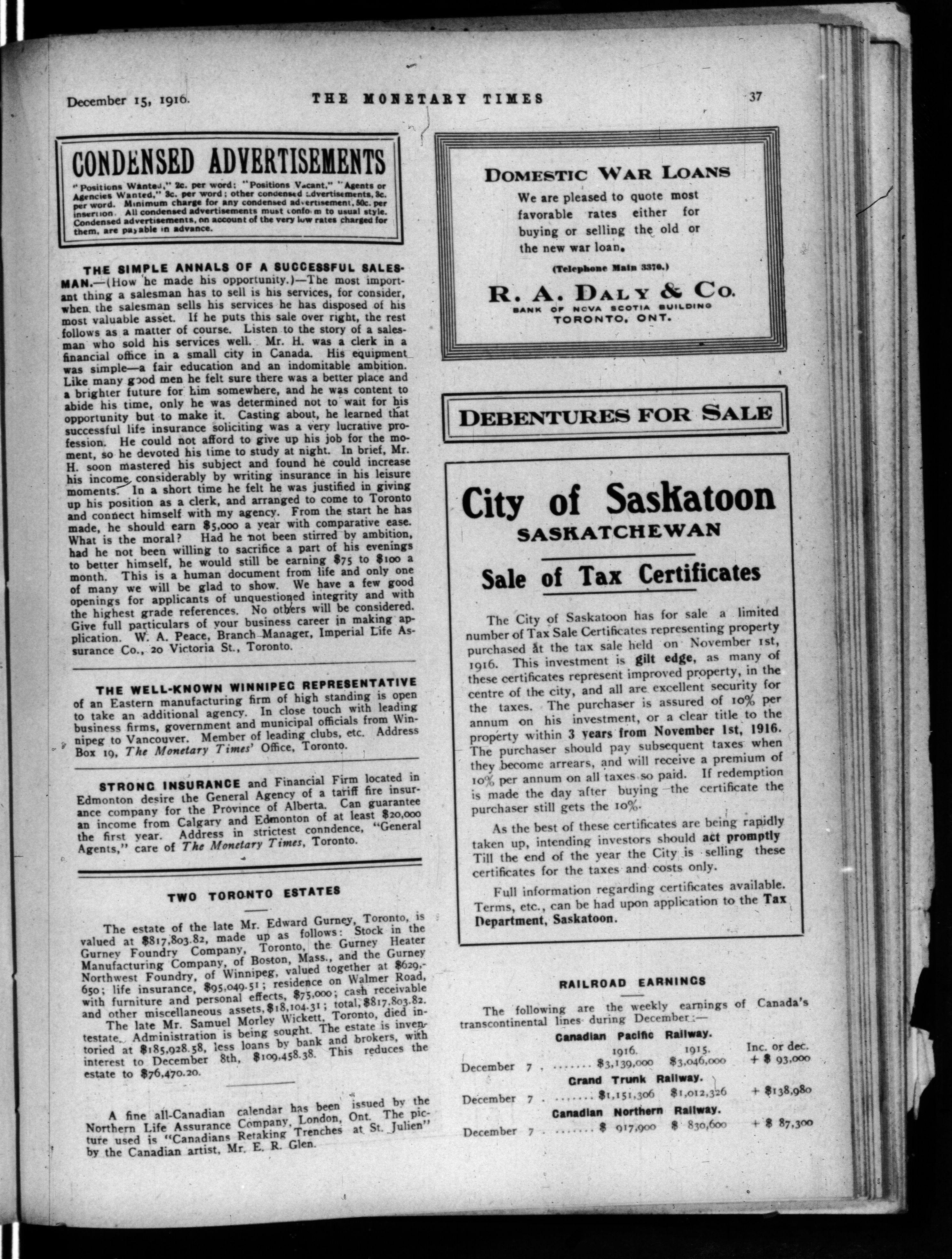 The monetary times, trade review and insurance chronicle : Volume 57, No. 24 (December 15, 1916)