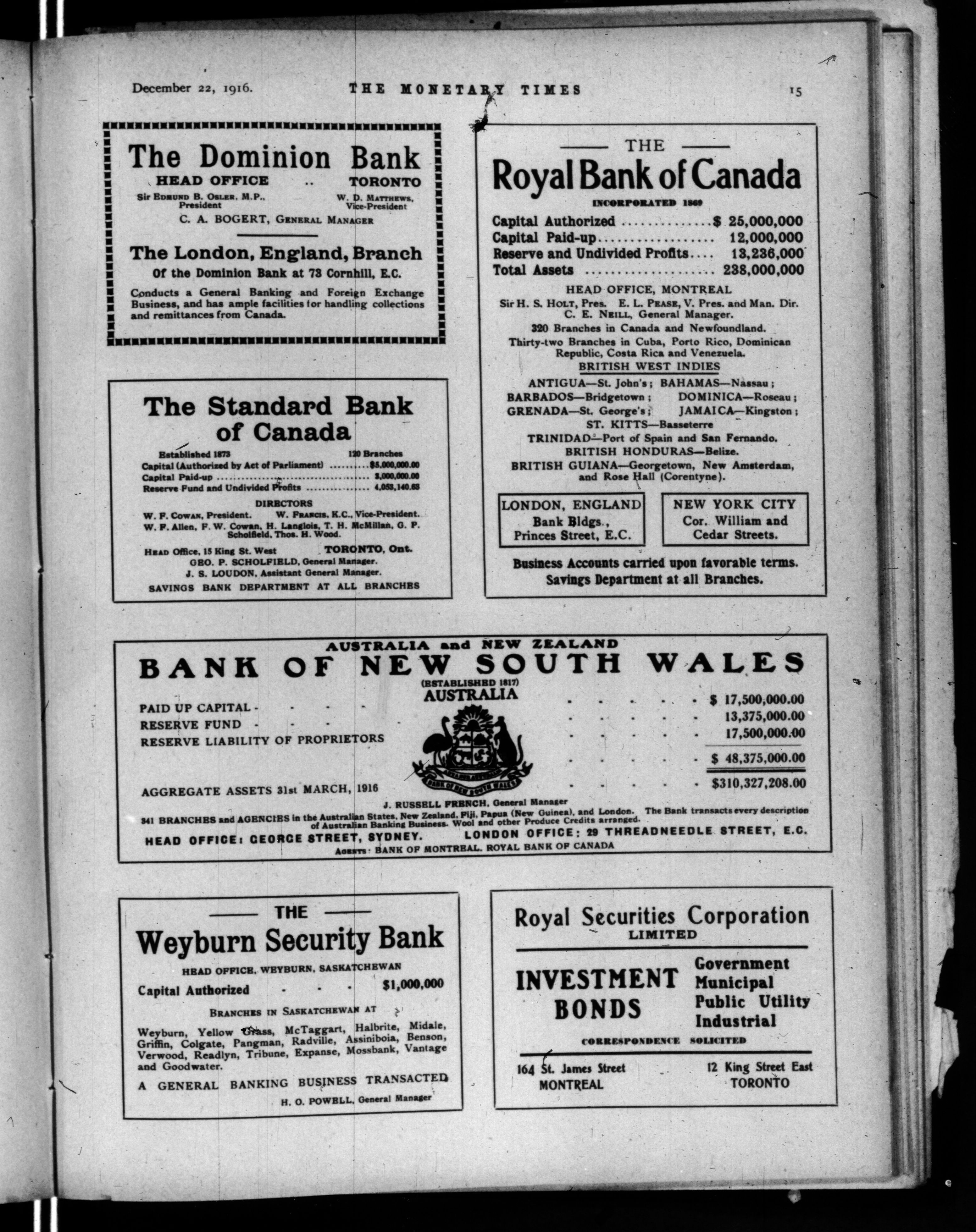 The monetary times, trade review and insurance chronicle : Volume 57, No. 25 (December 22, 1916)