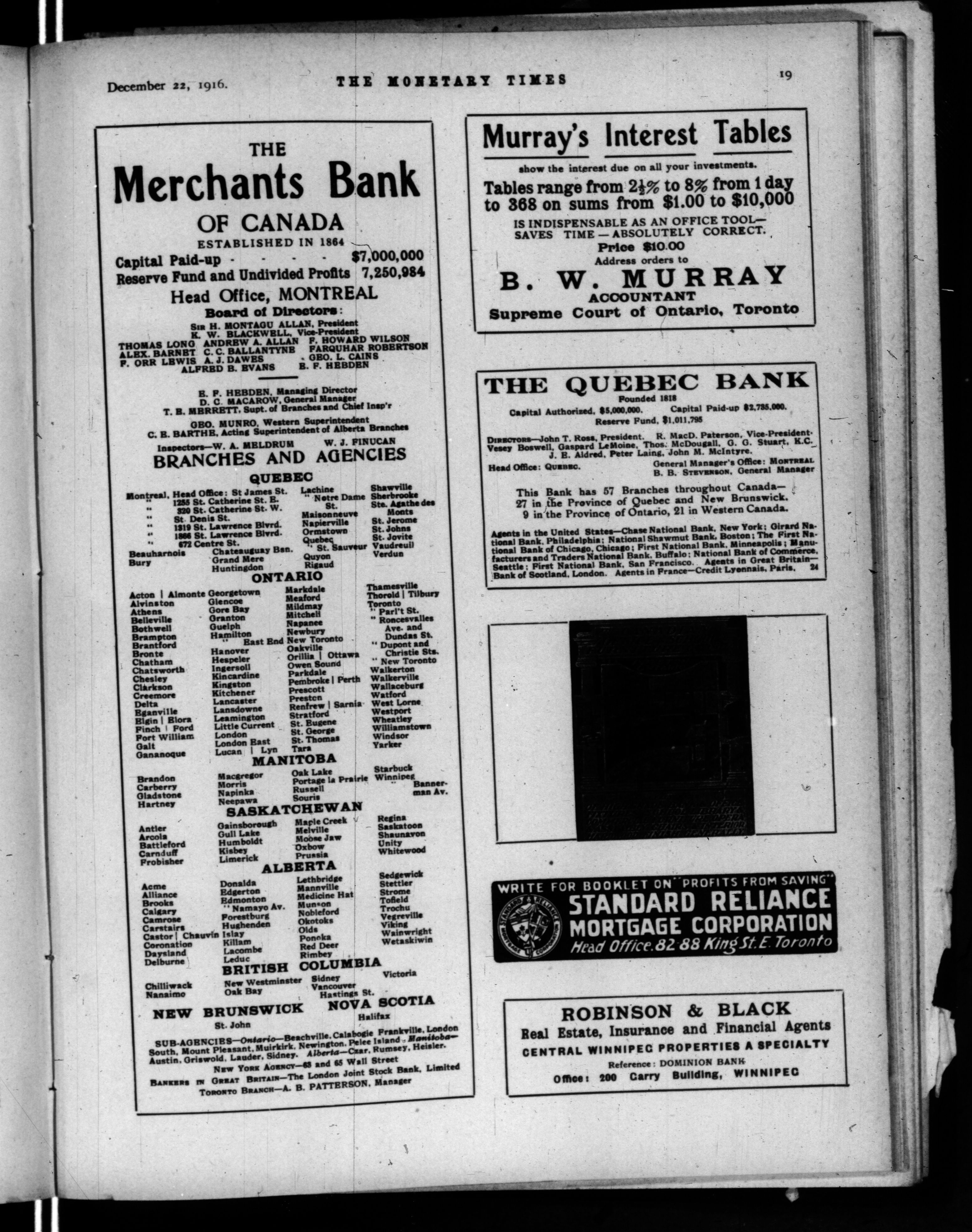 The monetary times, trade review and insurance chronicle : Volume 57, No. 25 (December 22, 1916)
