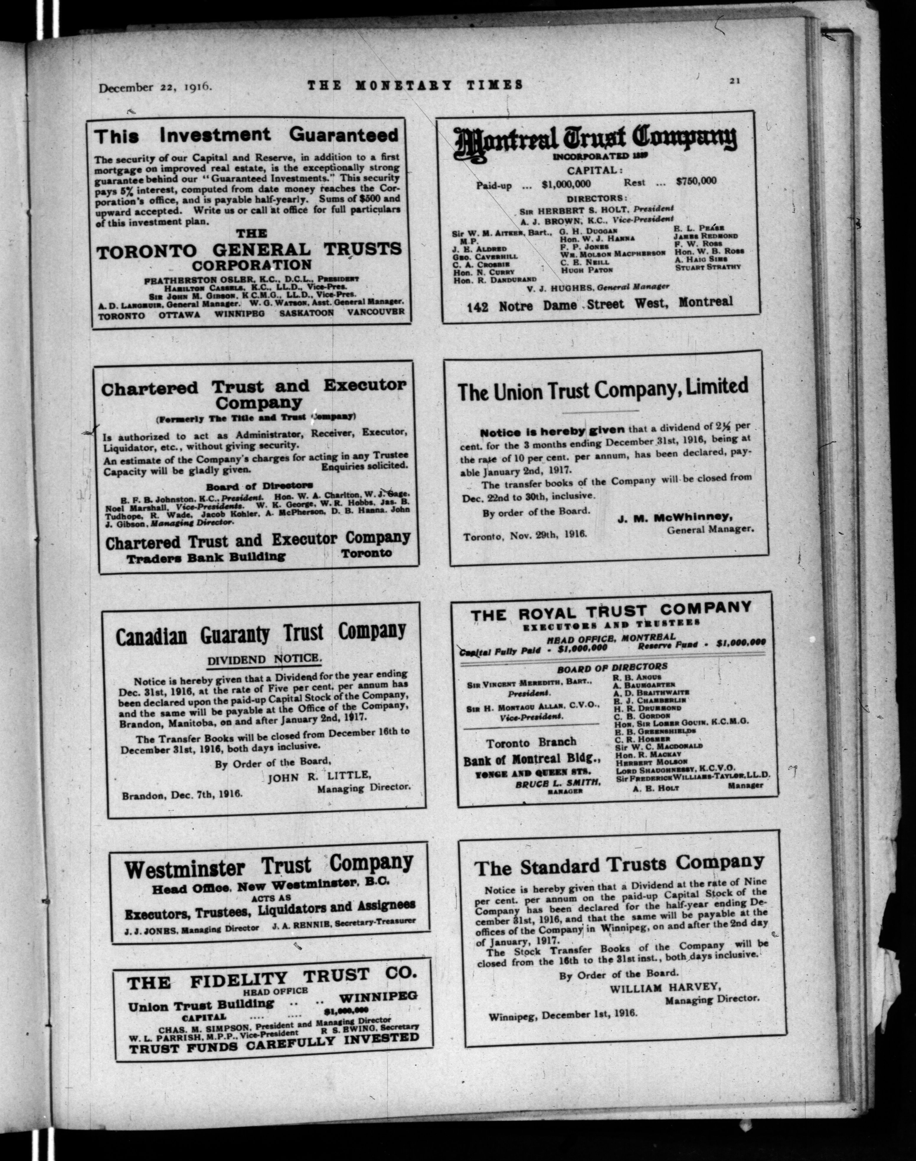 The monetary times, trade review and insurance chronicle : Volume 57, No. 25 (December 22, 1916)