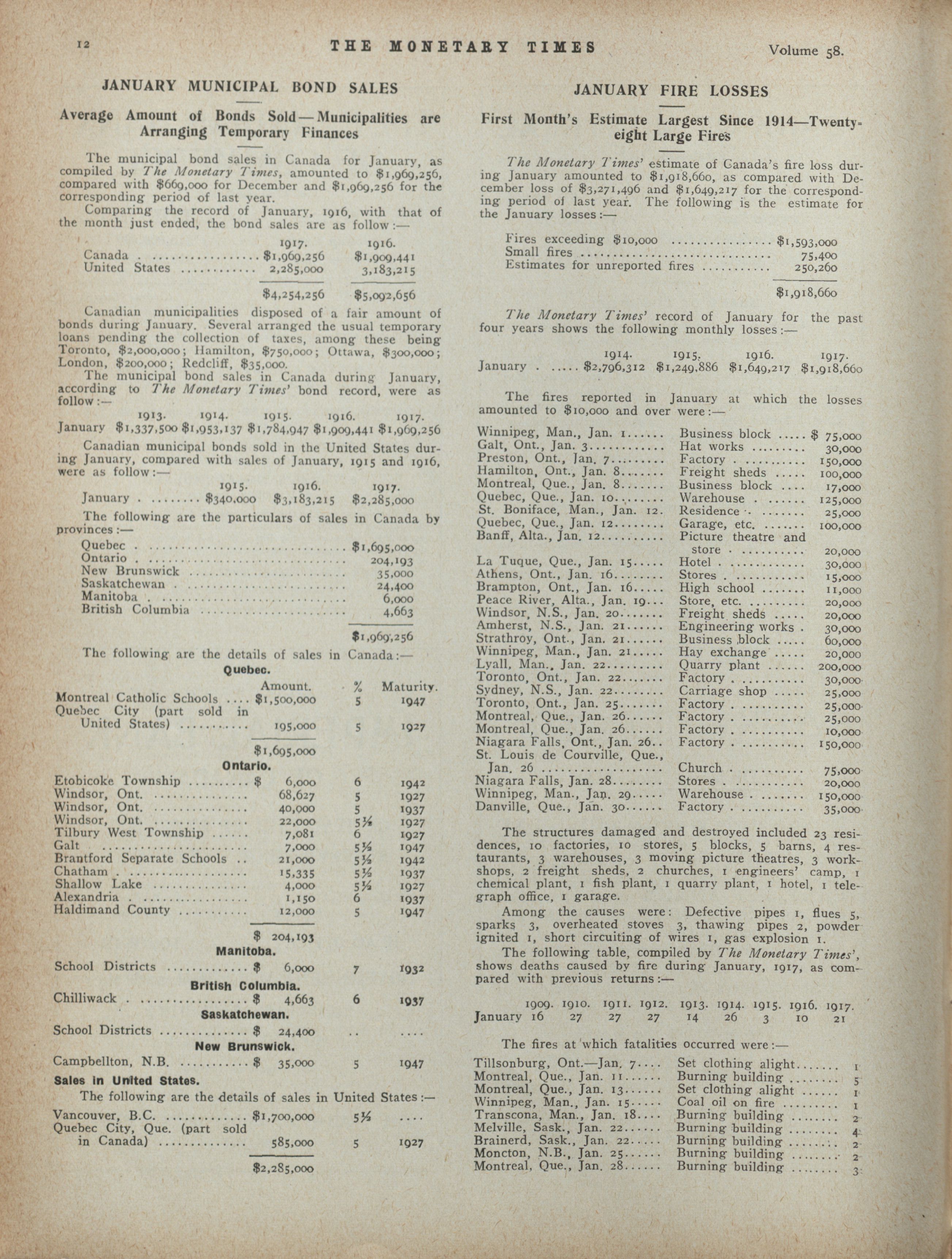 - The Monetary Times, trade review and insurance chronicle. : Volume 58 No. 6 (February 9, 1917)