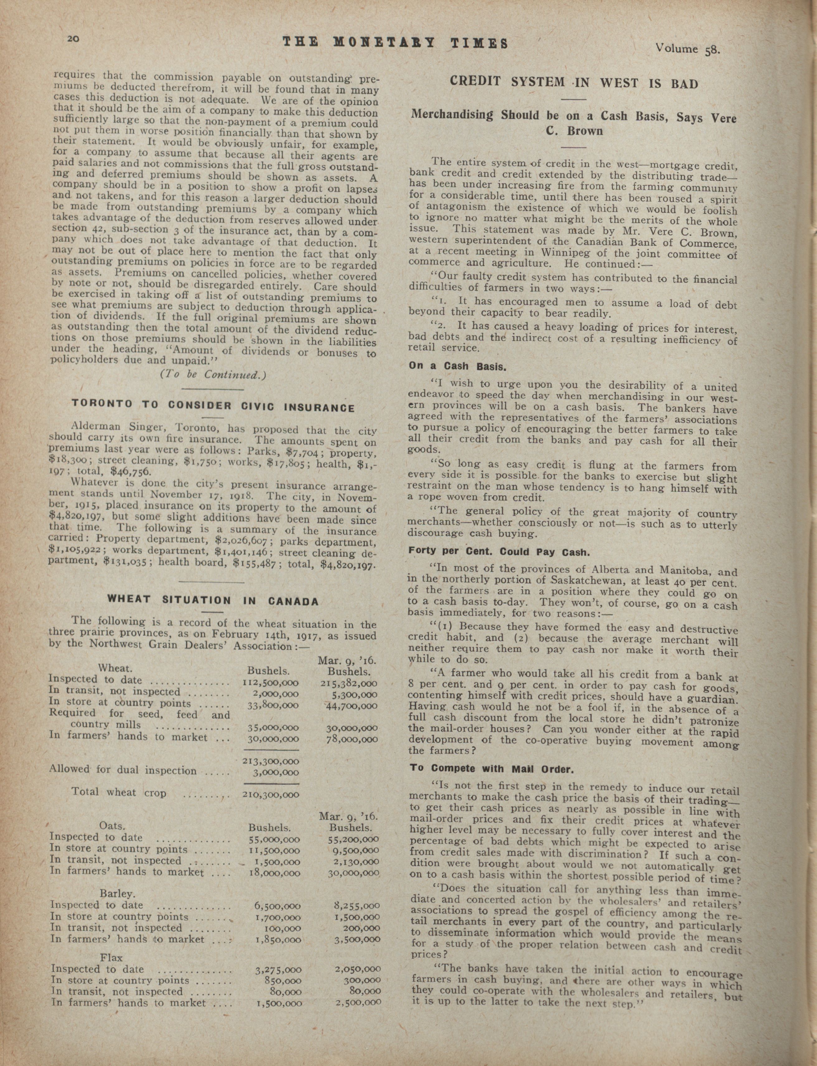 - The Monetary Times, trade review and insurance chronicle. : Volume 58 No. 9 (March 2, 1917)