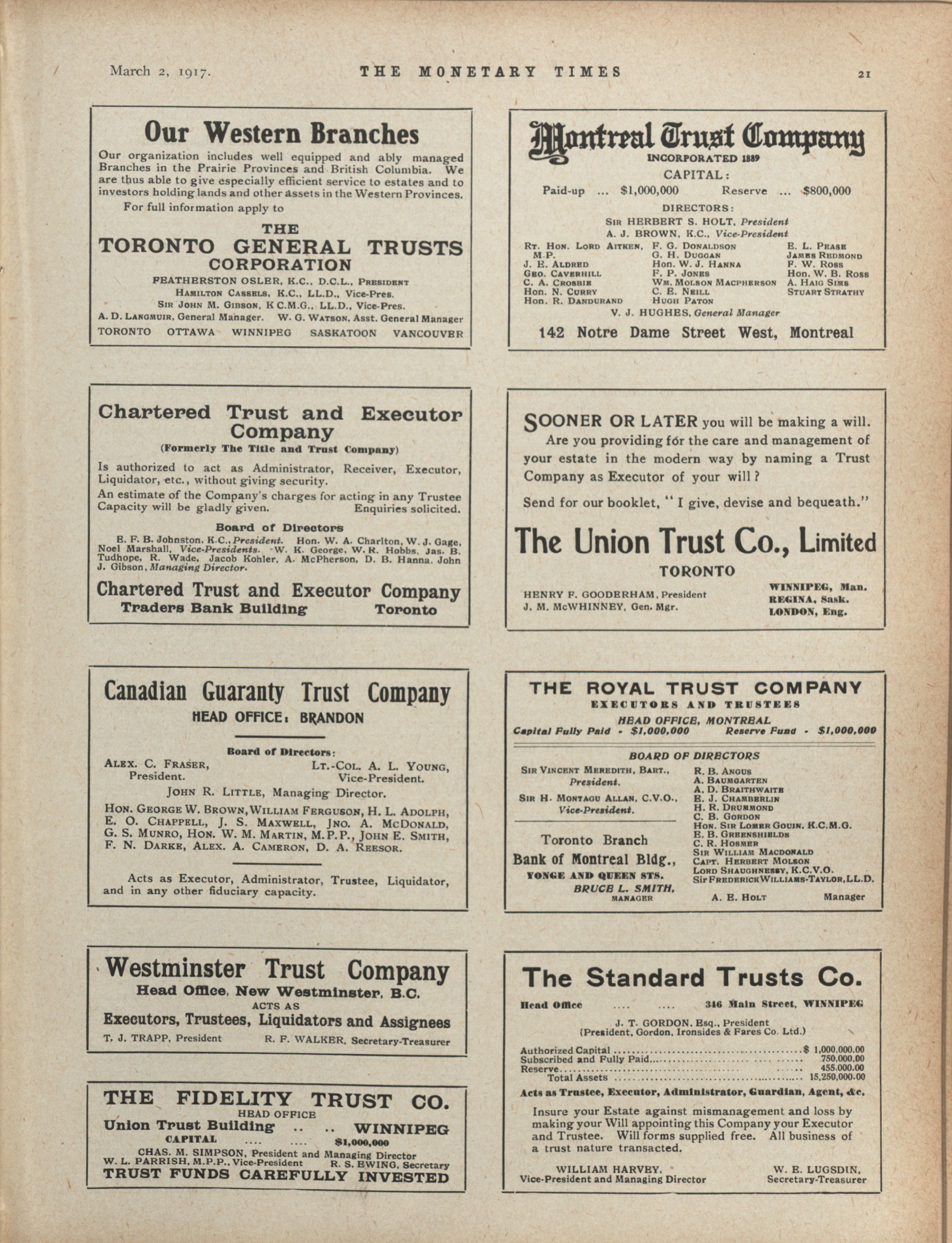 - The Monetary Times, trade review and insurance chronicle. : Volume 58 No. 9 (March 2, 1917)