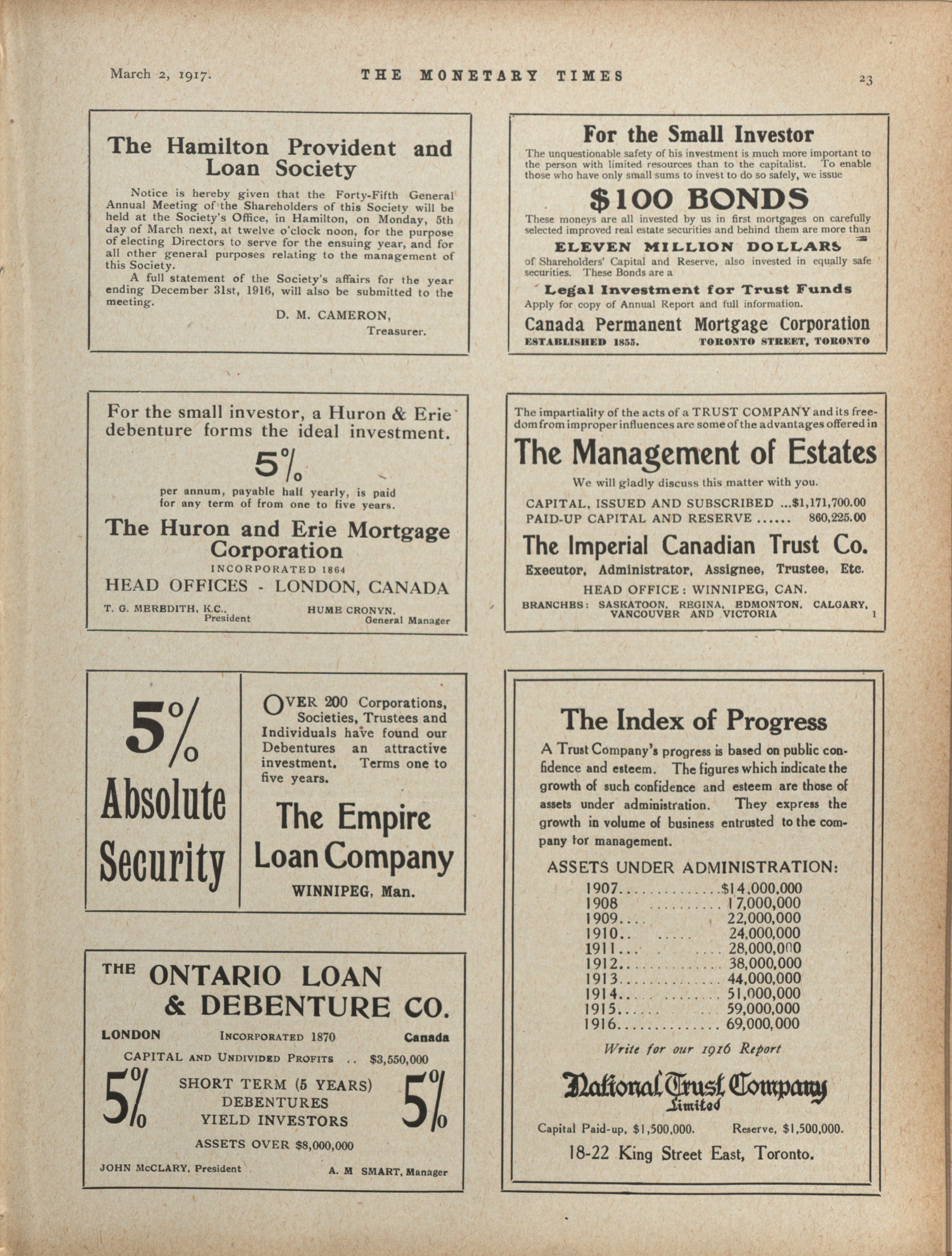 - The Monetary Times, trade review and insurance chronicle. : Volume 58 No. 9 (March 2, 1917)