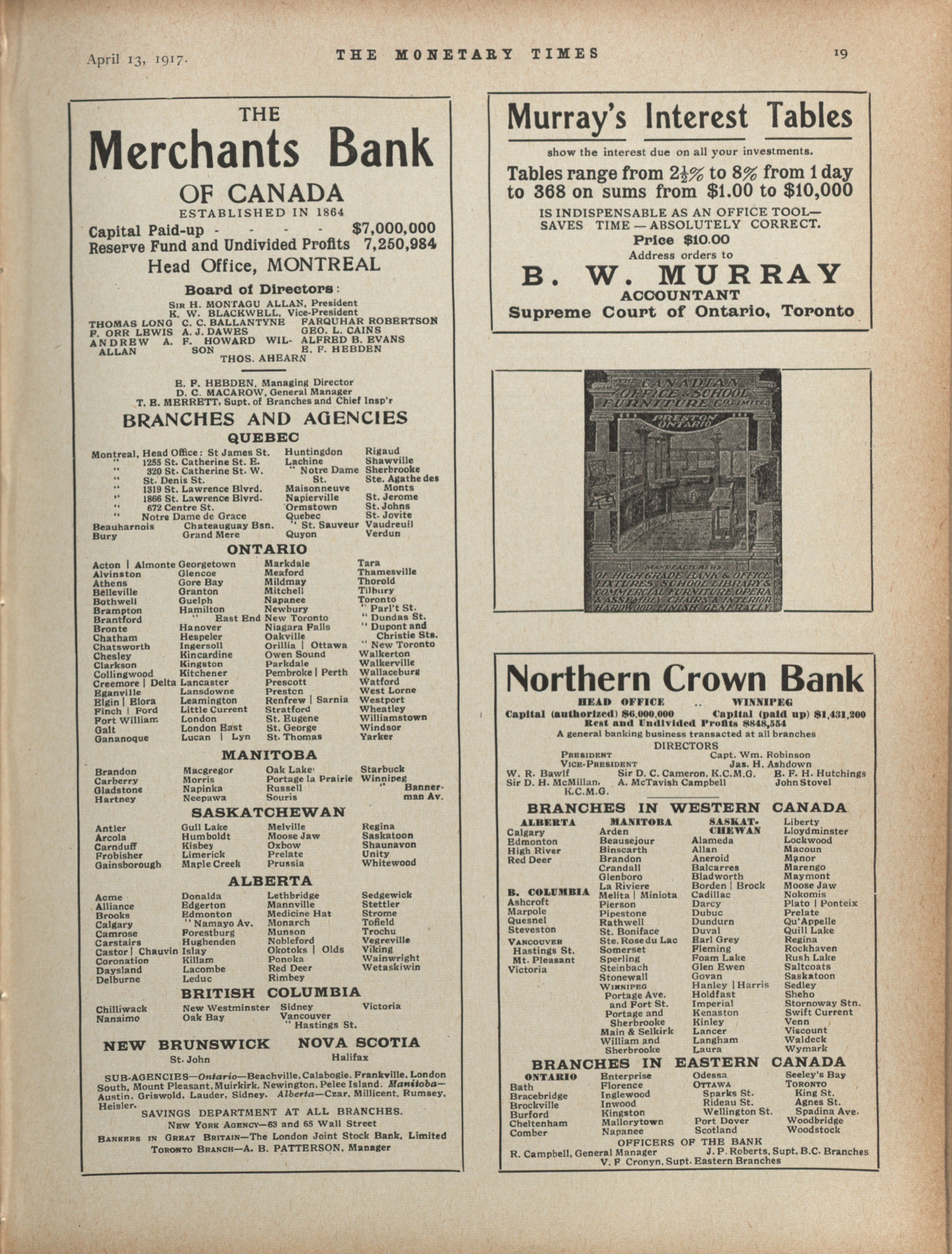 - The Monetary Times, trade review and insurance chronicle. : Volume 58 No. 15 (April 13, 1917)