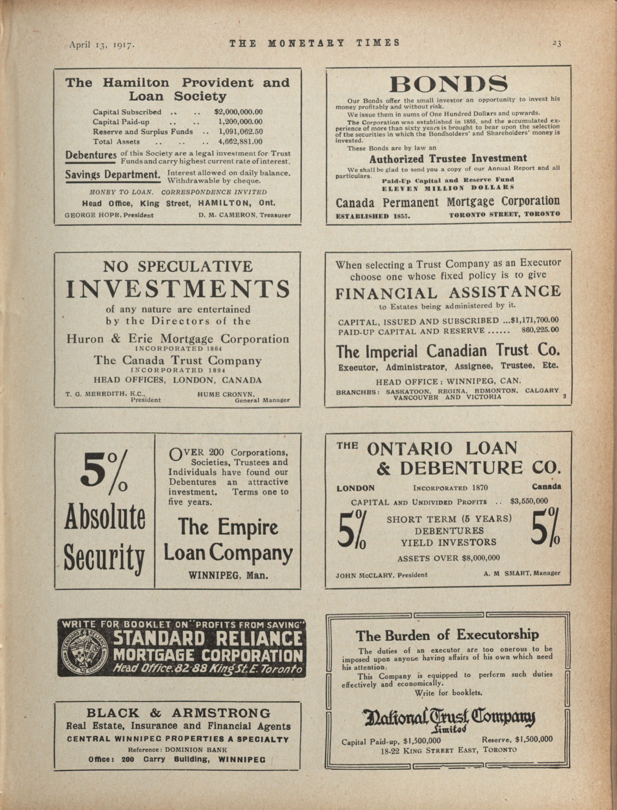 - The Monetary Times, trade review and insurance chronicle. : Volume 58 No. 15 (April 13, 1917)