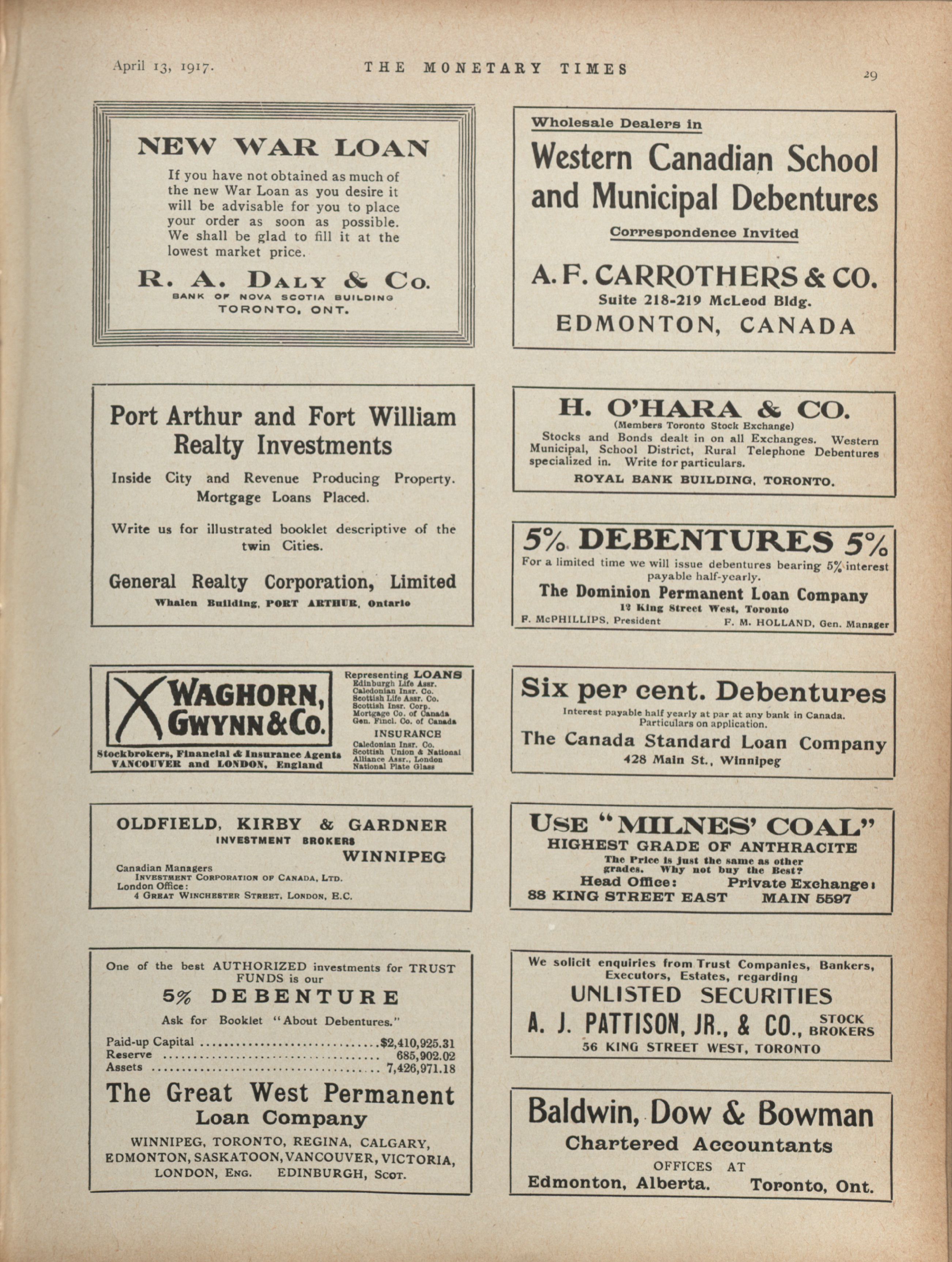 - The Monetary Times, trade review and insurance chronicle. : Volume 58 No. 15 (April 13, 1917)
