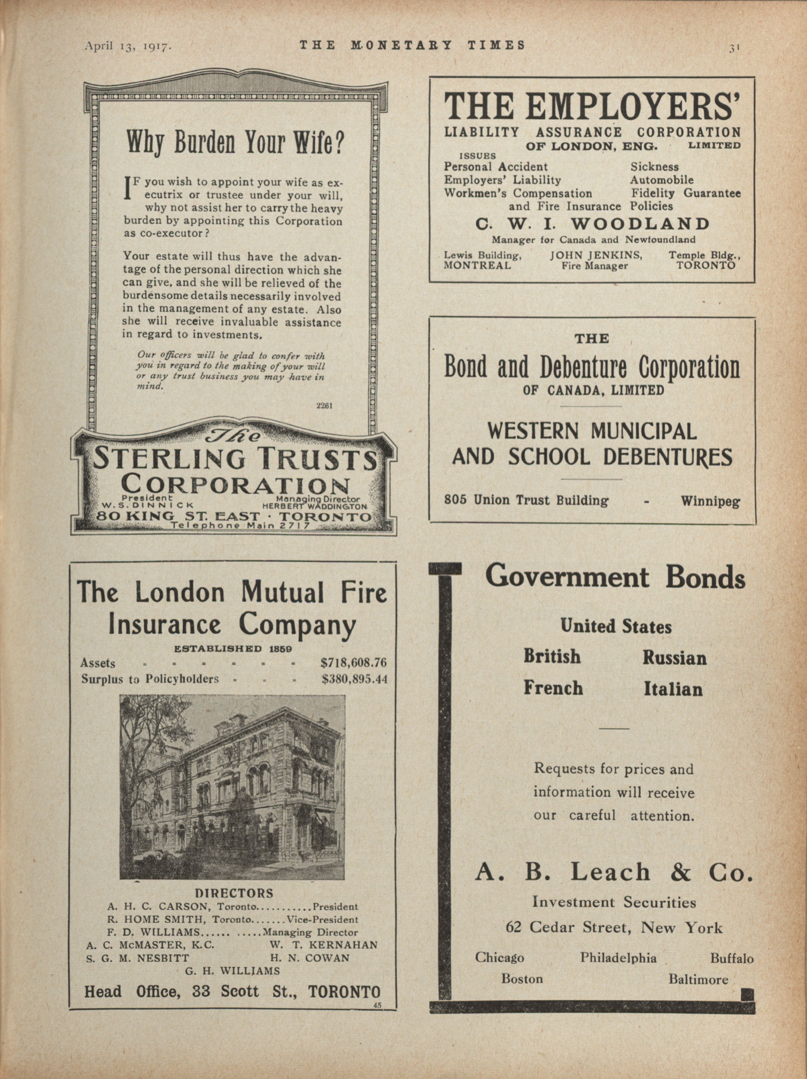 - The Monetary Times, trade review and insurance chronicle. : Volume 58 No. 15 (April 13, 1917)