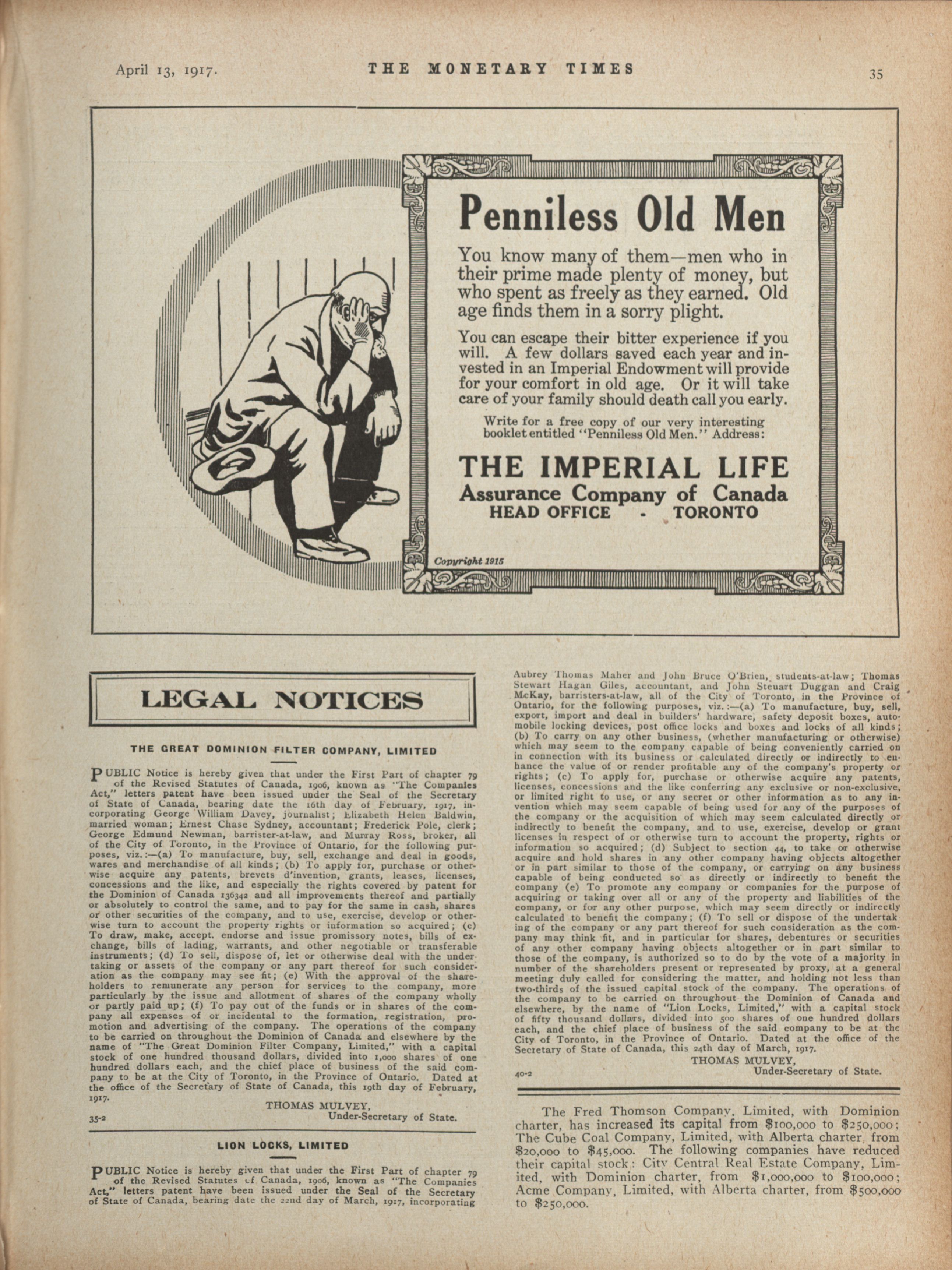 - The Monetary Times, trade review and insurance chronicle. : Volume 58 No. 15 (April 13, 1917)