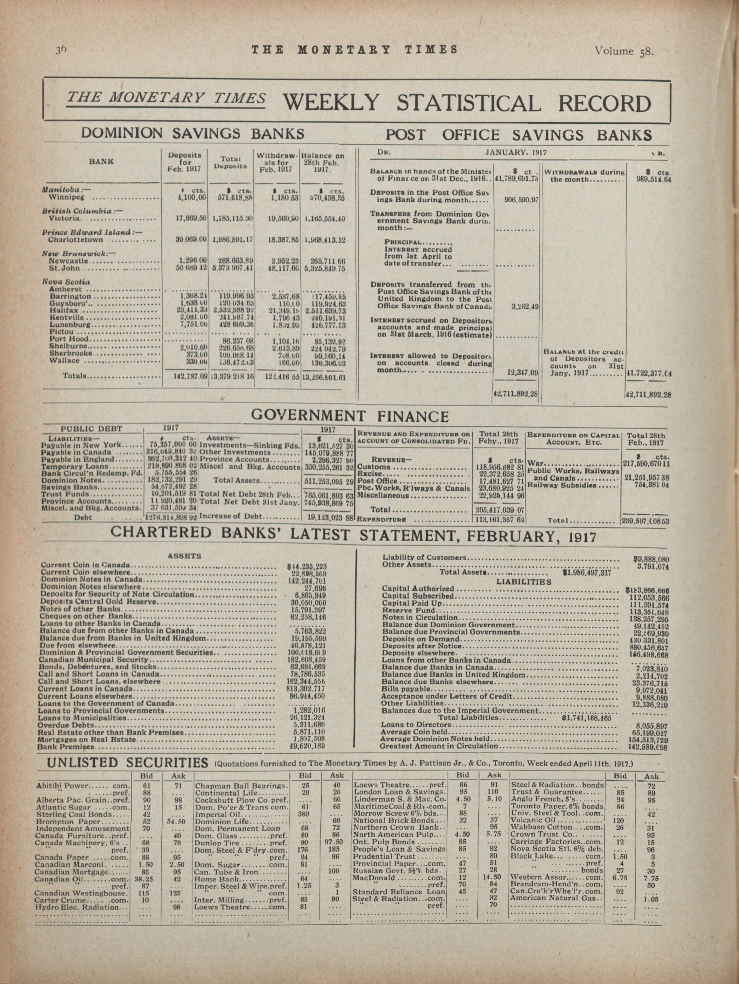 The monetary times, trade review and insurance chronicle : Volume 58 No. 15 (April 13, 1917)
