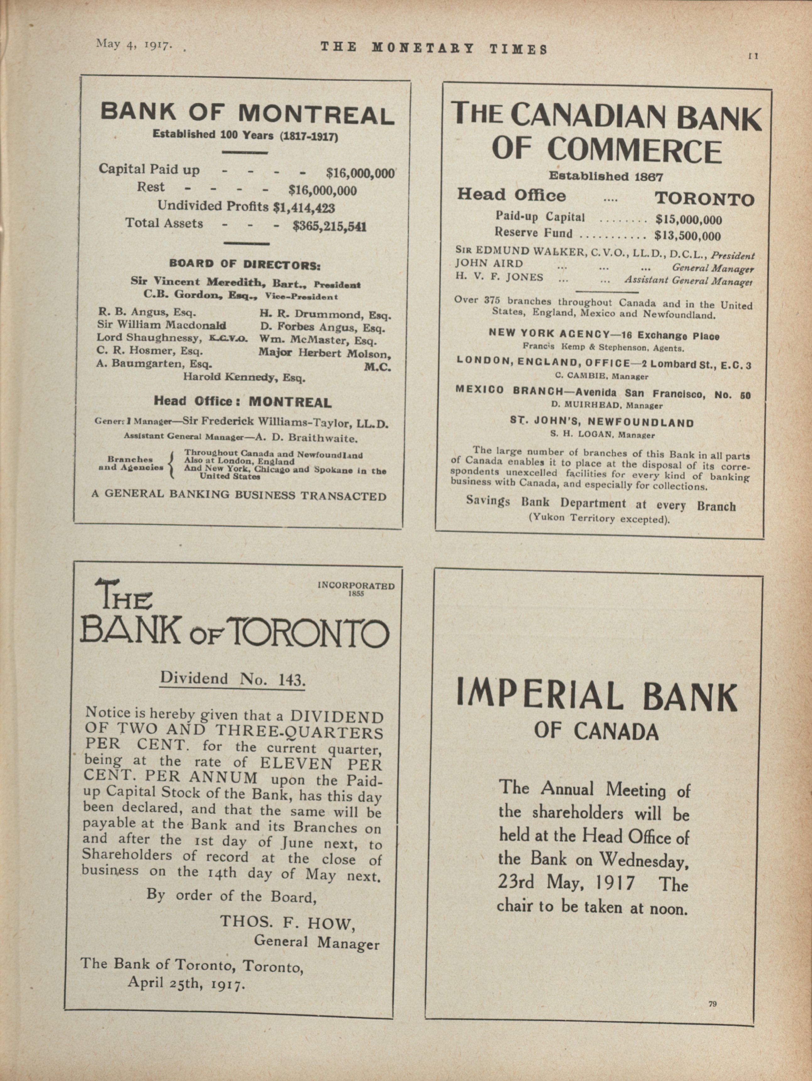 The monetary times, trade review and insurance chronicle : Volume 58 No. 18 (May 4, 1917)