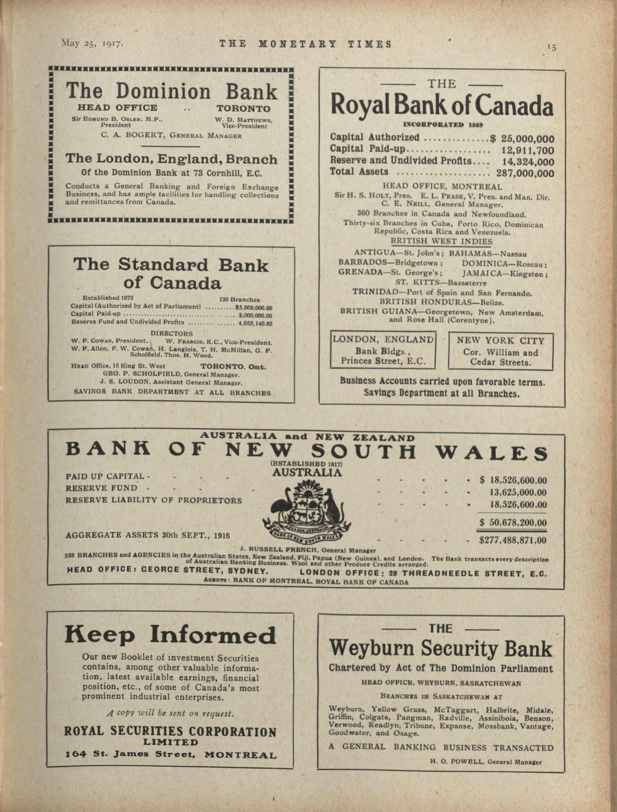 - The Monetary Times, trade review and insurance chronicle. : Volume 58 No. 21 (May 25, 1917)