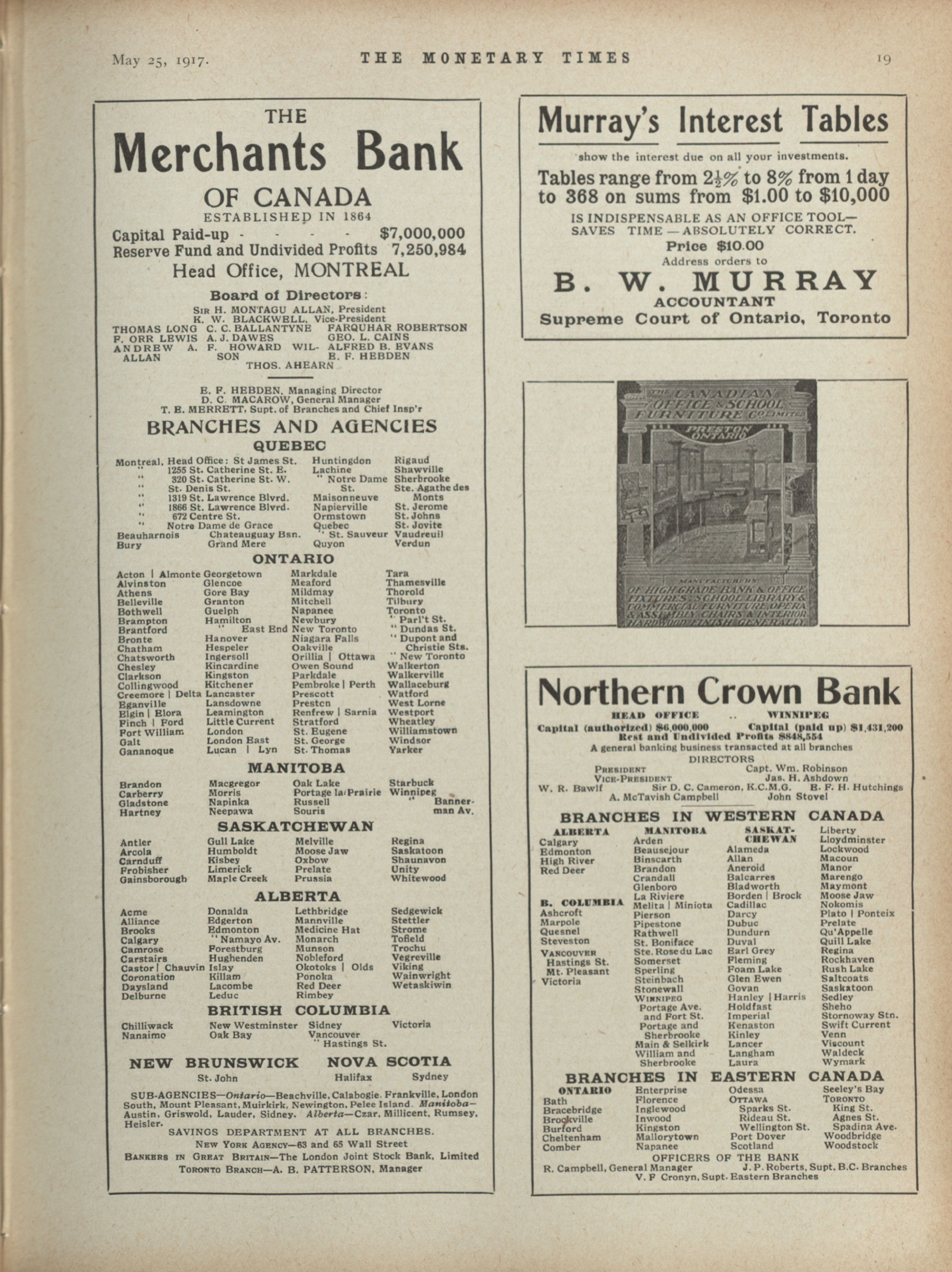 The monetary times, trade review and insurance chronicle : Volume 58 No. 21 (May 25, 1917)