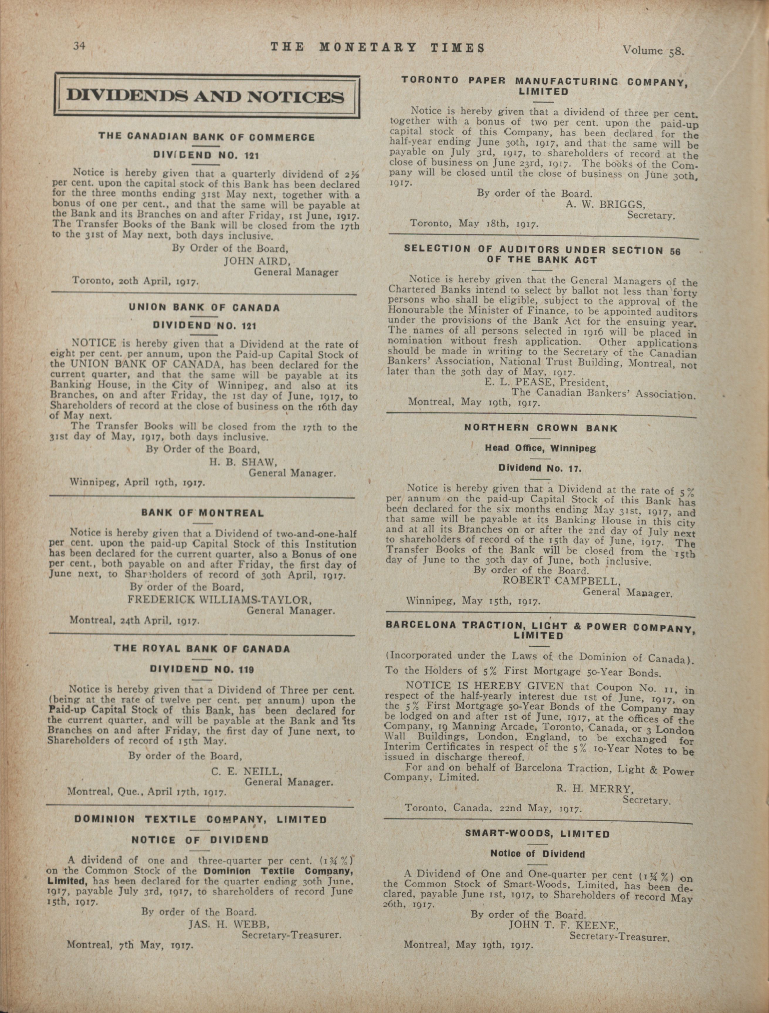 The monetary times, trade review and insurance chronicle : Volume 58 No. 21 (May 25, 1917)