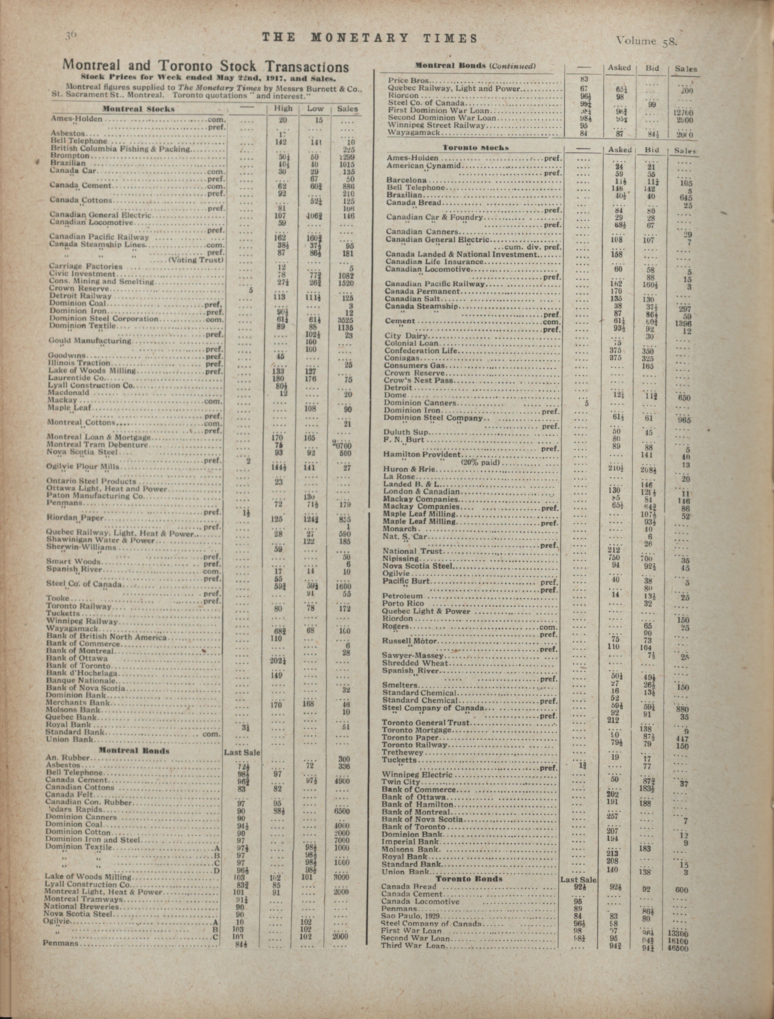 - The Monetary Times, trade review and insurance chronicle. : Volume 58 No. 21 (May 25, 1917)