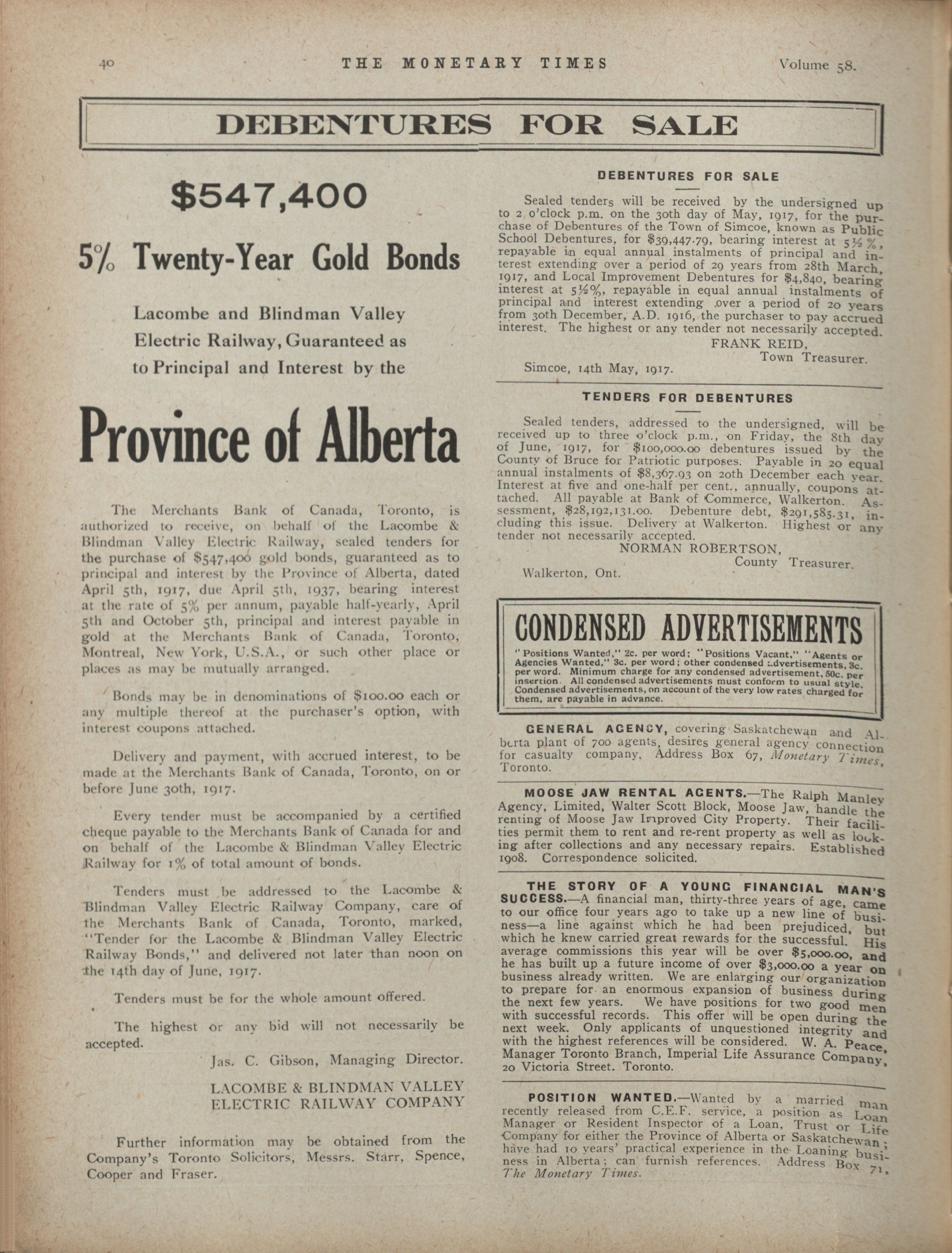 - The Monetary Times, trade review and insurance chronicle. : Volume 58 No. 21 (May 25, 1917)