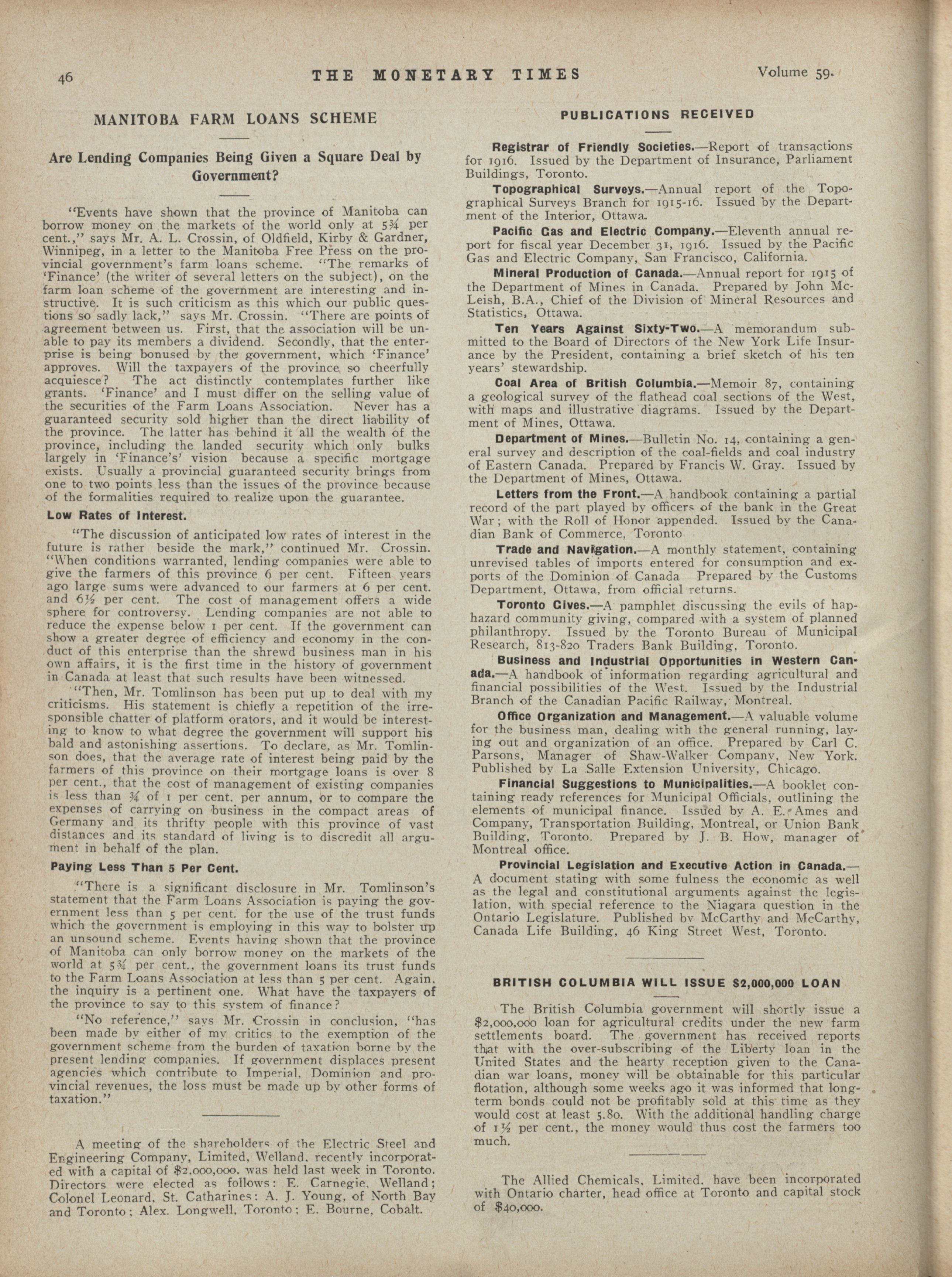 The monetary times, trade review and insurance chronicle : Volume 59 No. 2 (July 13, 1917)