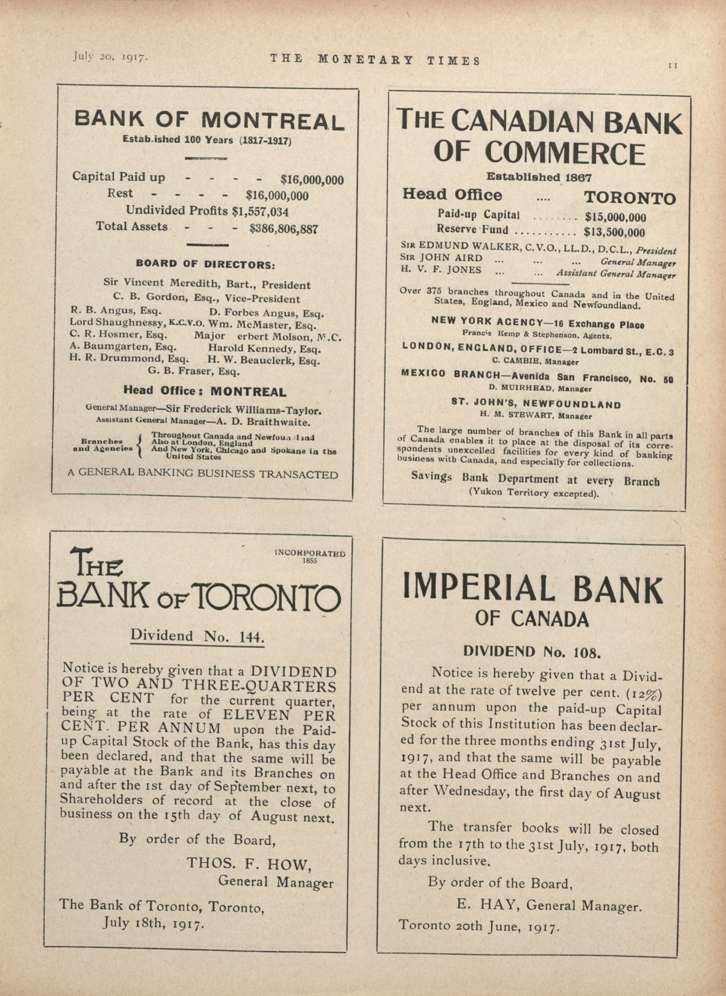 - The Monetary Times, trade review and insurance chronicle. : Volume 59 No. 3 (July 20, 1917)