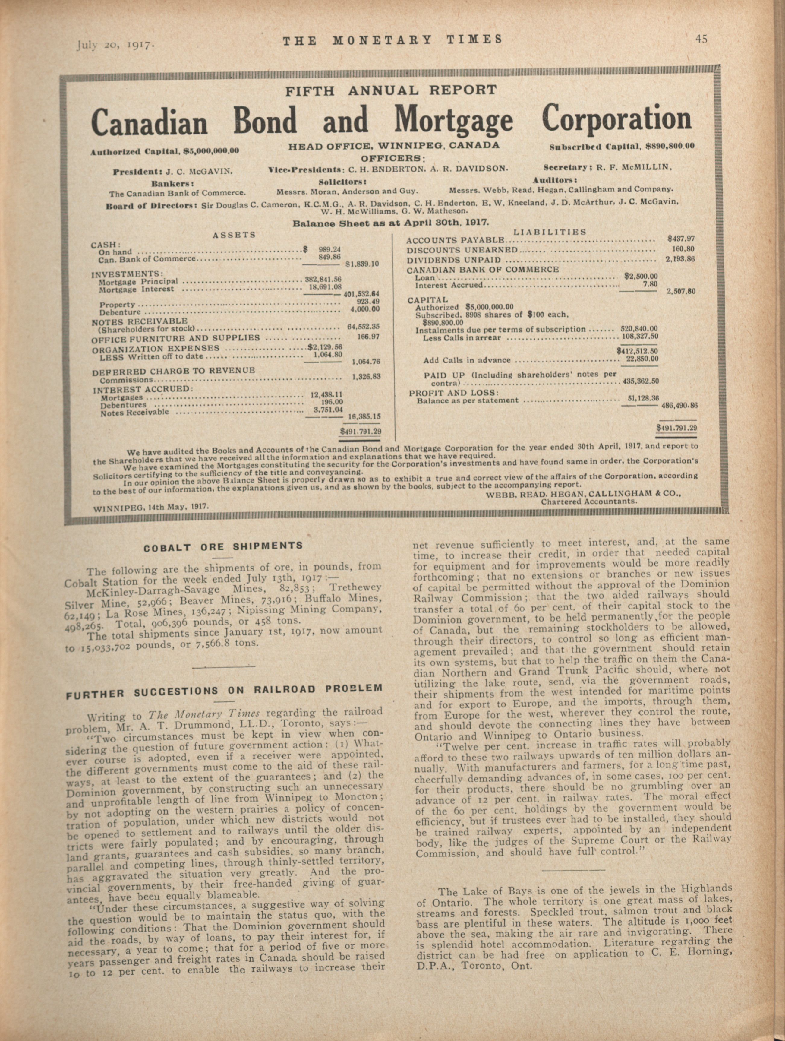 The Monetary Times, trade review and insurance chronicle. : Volume 59 No. 3 (July 20, 1917)