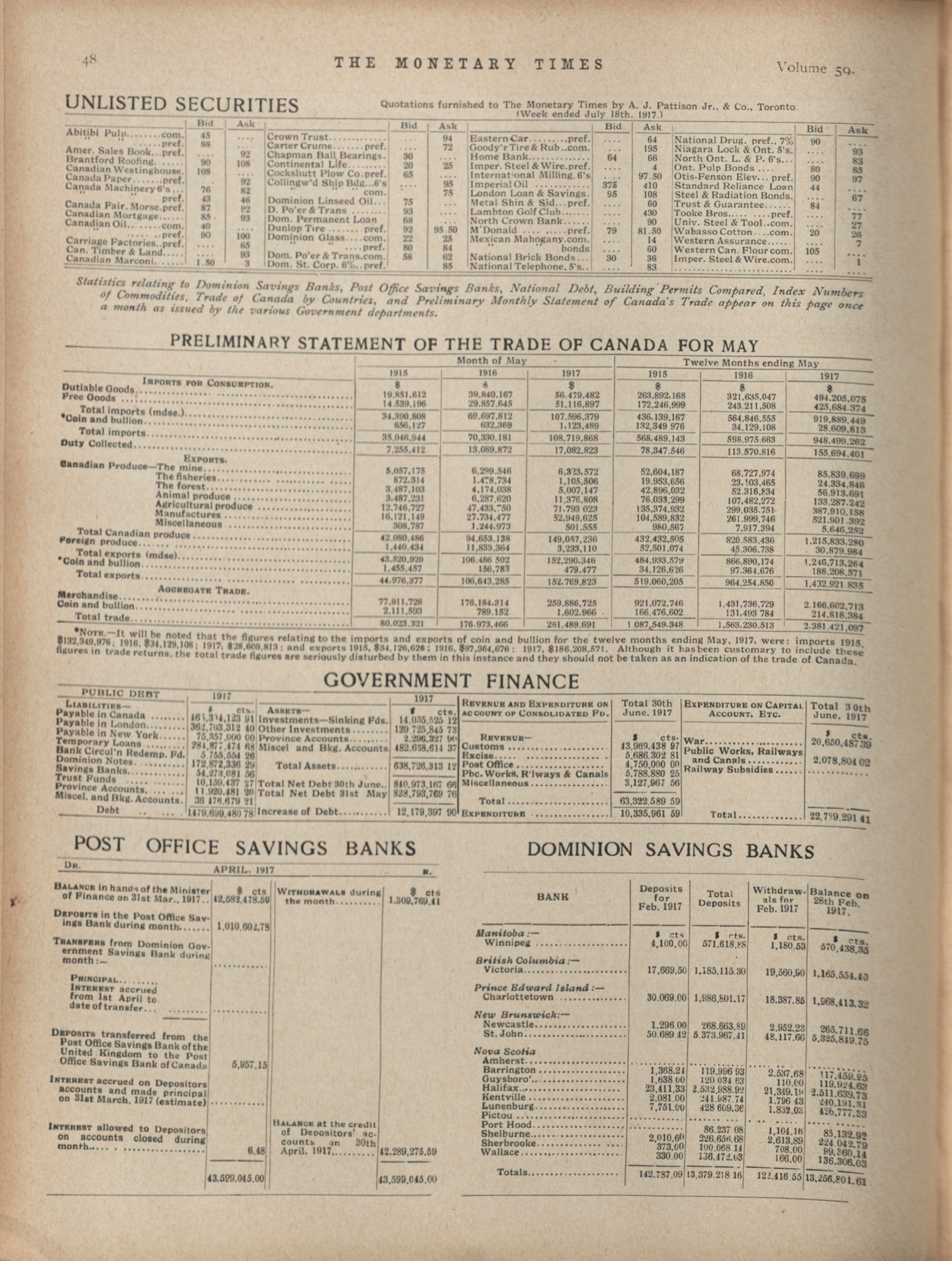 The monetary times, trade review and insurance chronicle : Volume 59 No. 3 (July 20, 1917)