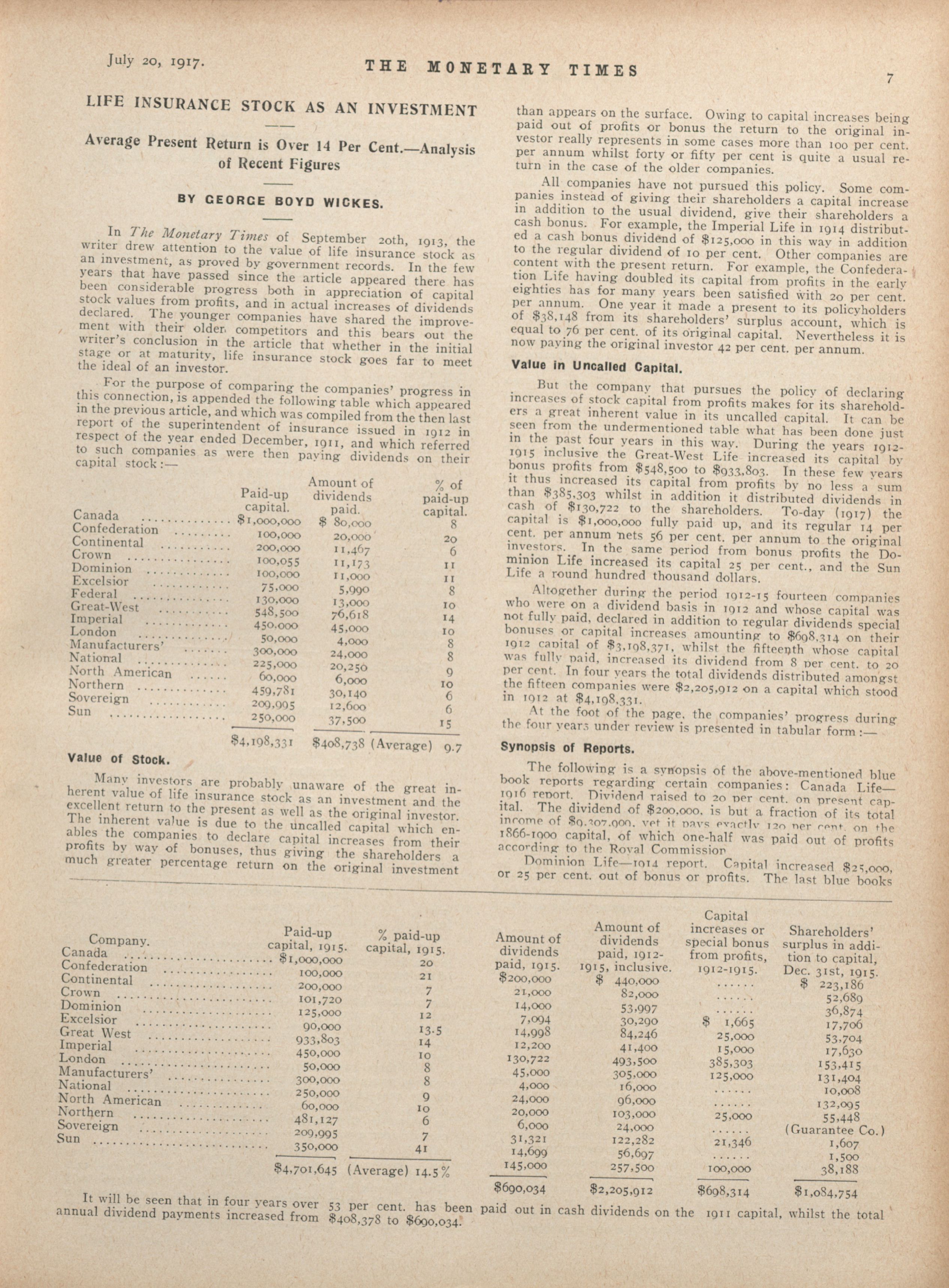 - The Monetary Times, trade review and insurance chronicle. : Volume 59 No. 3 (July 20, 1917)