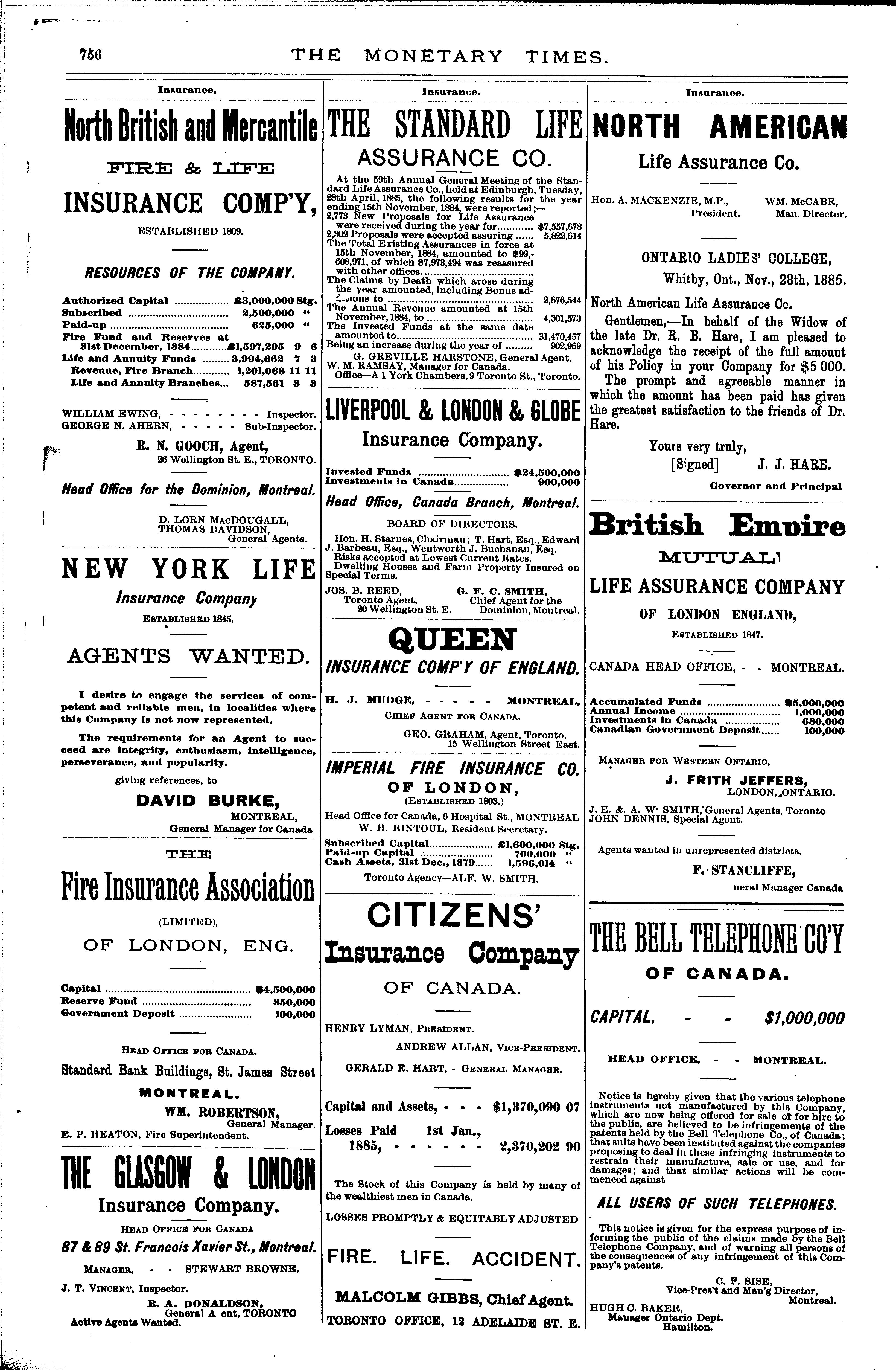 The monetary times, trade review and insurance chronicle : [Vol. 19, no. 27 (Jan. 1, 1886)]