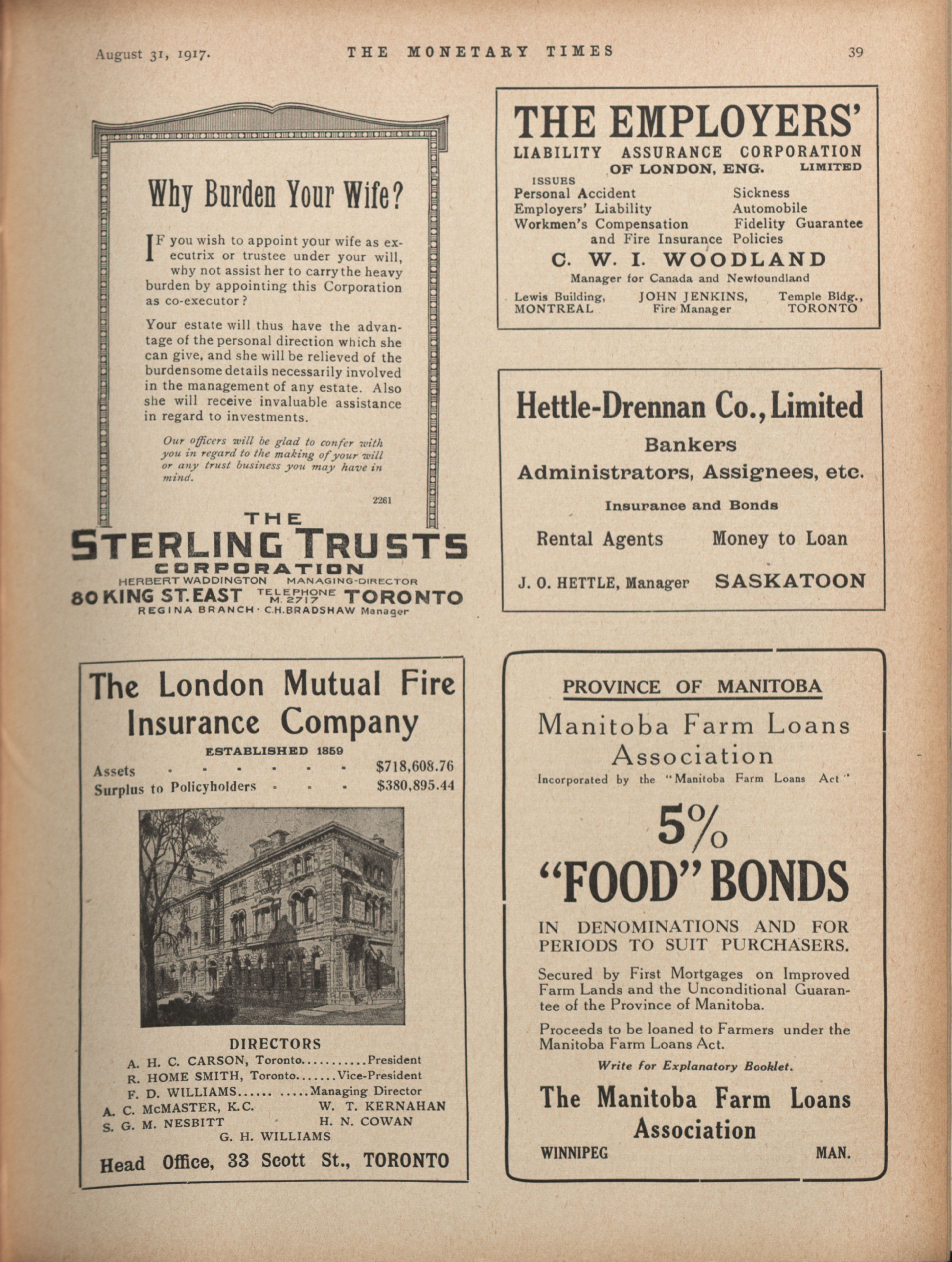 - The Monetary Times, trade review and insurance chronicle. : Volume 59 No. 9 (August 31, 1917)