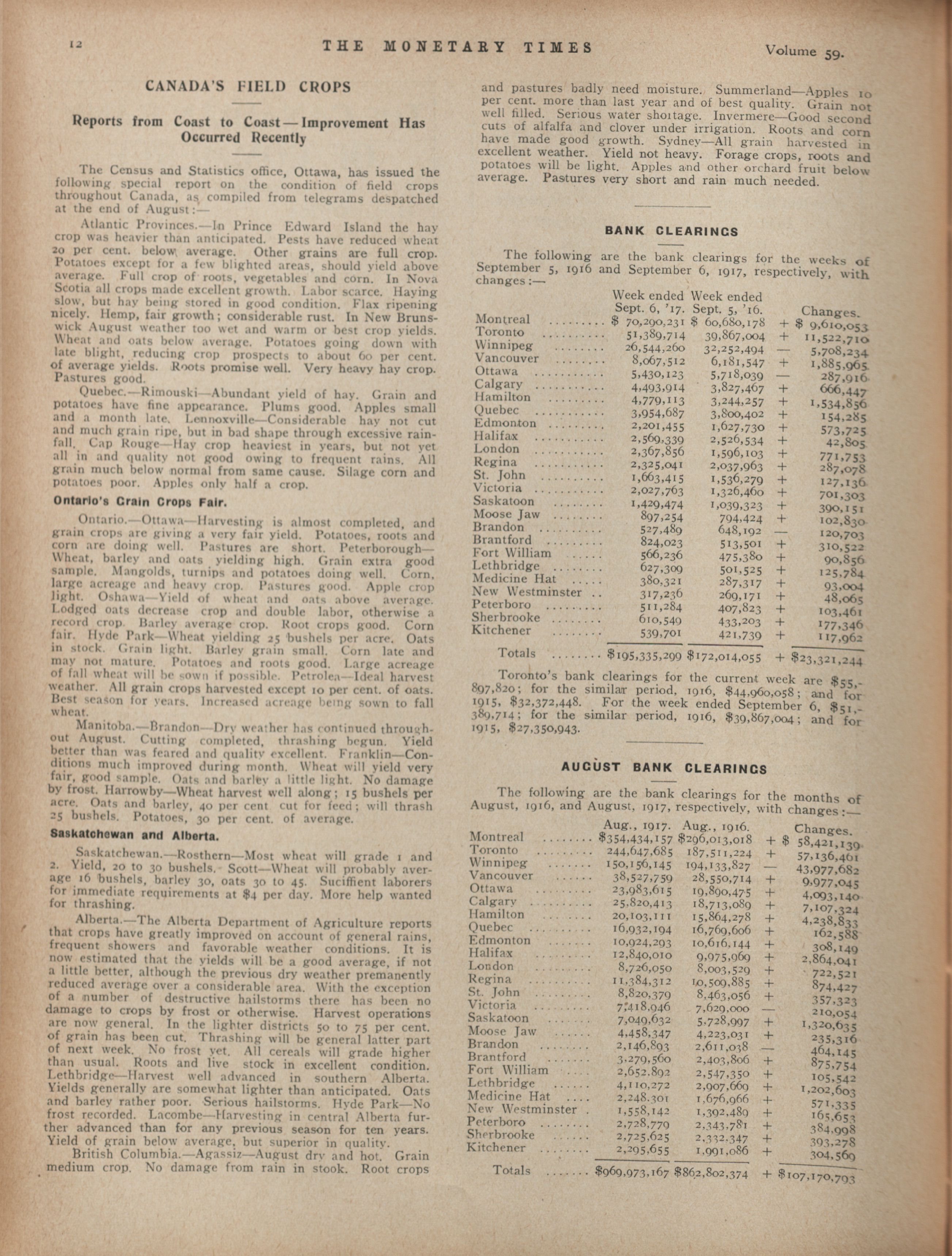 - The Monetary Times, trade review and insurance chronicle. : Volume 59 No. 11 (September 14, 1917)