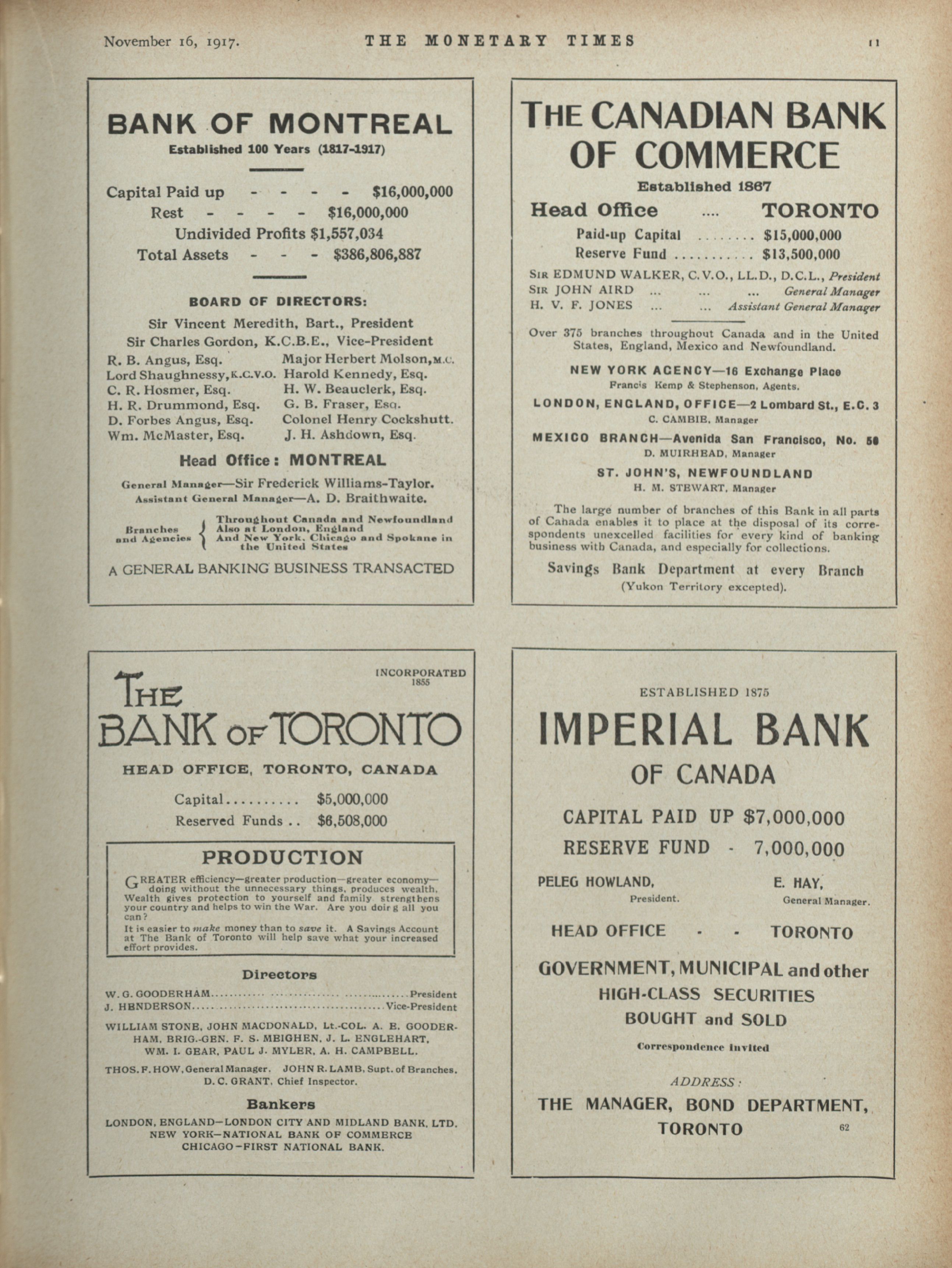 - The Monetary Times, trade review and insurance chronicle. : Volume 59 No. 20 (November 16, 1917)