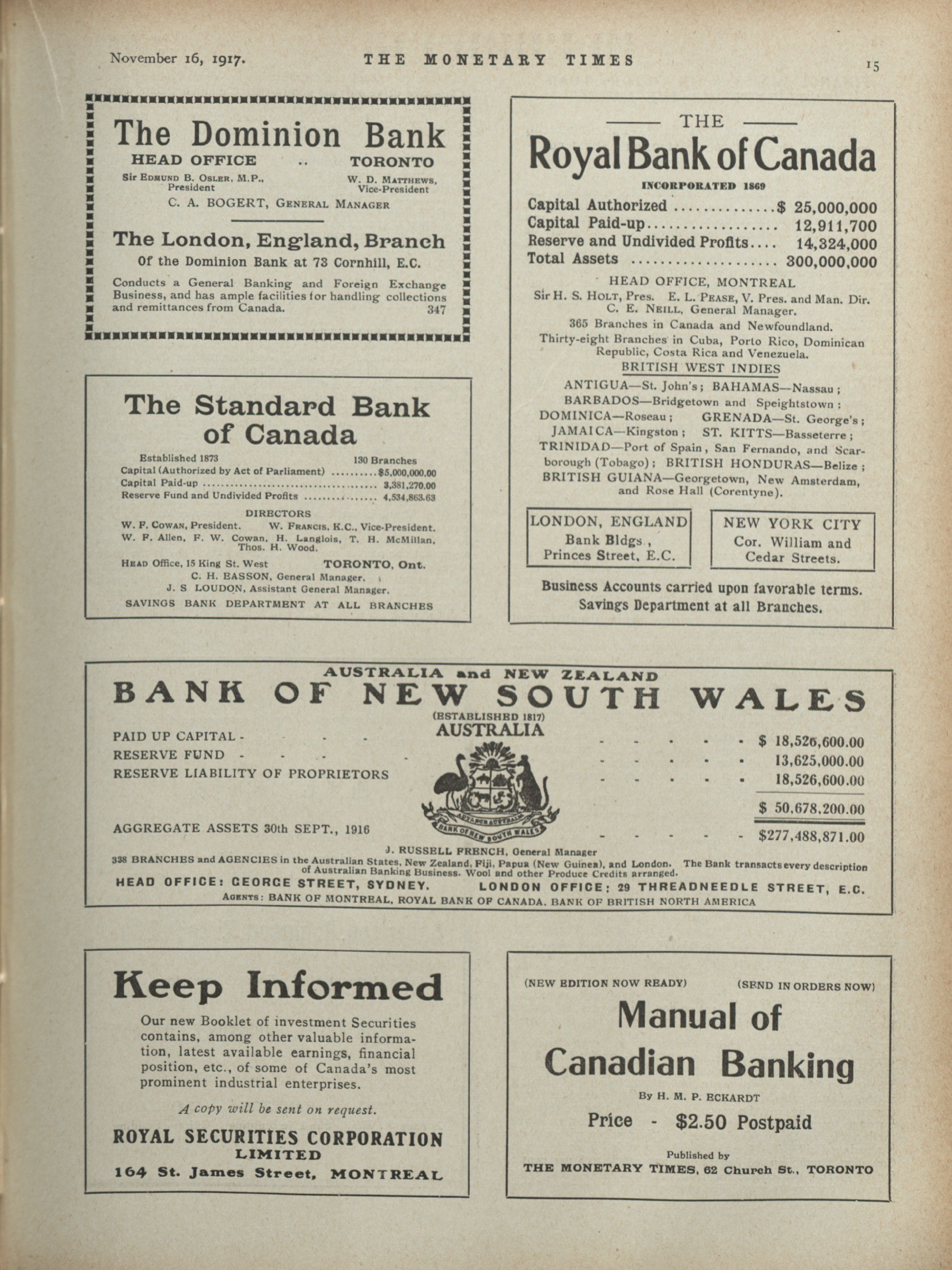 - The Monetary Times, trade review and insurance chronicle. : Volume 59 No. 20 (November 16, 1917)
