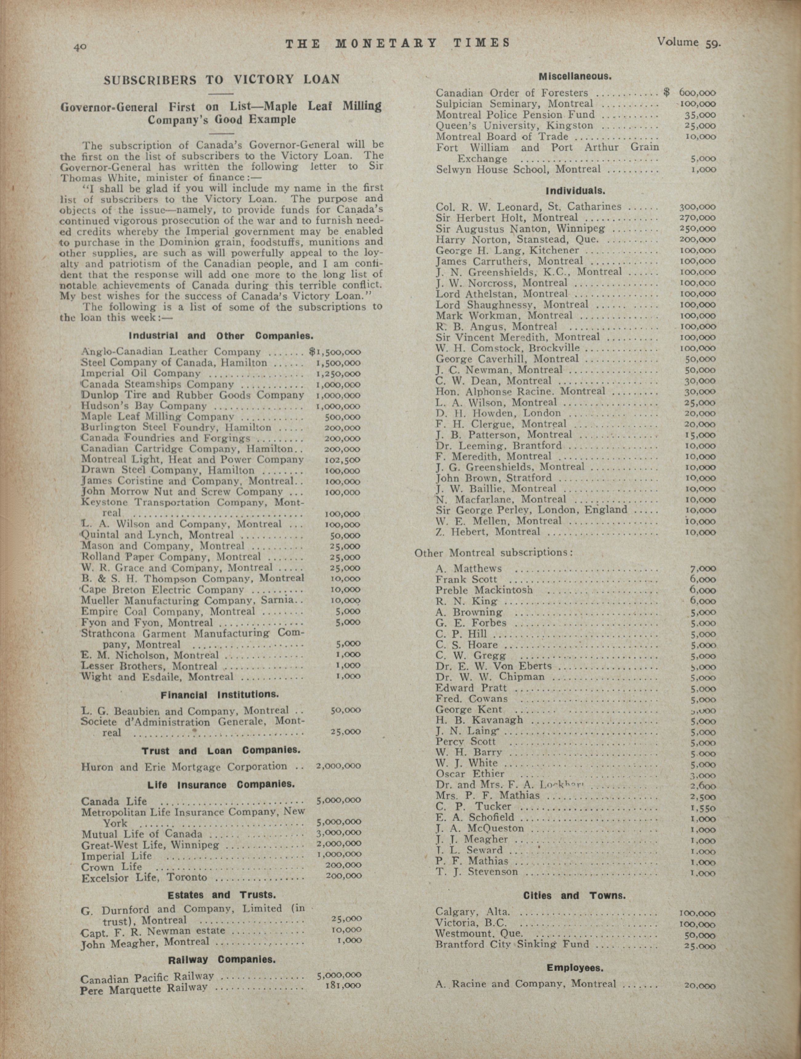 The monetary times, trade review and insurance chronicle : Volume 59 No. 20 (November 16, 1917)