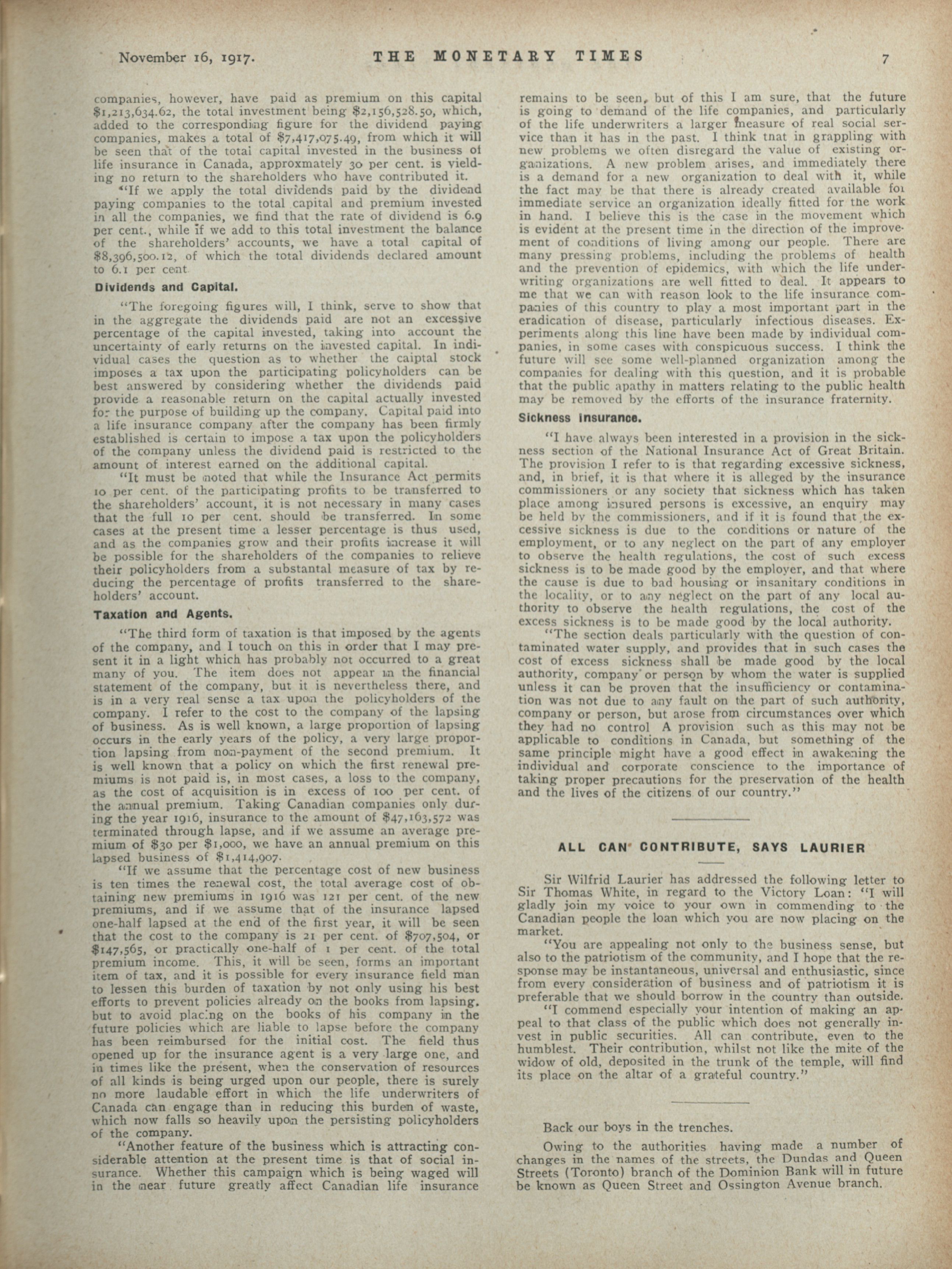 - The Monetary Times, trade review and insurance chronicle. : Volume 59 No. 20 (November 16, 1917)