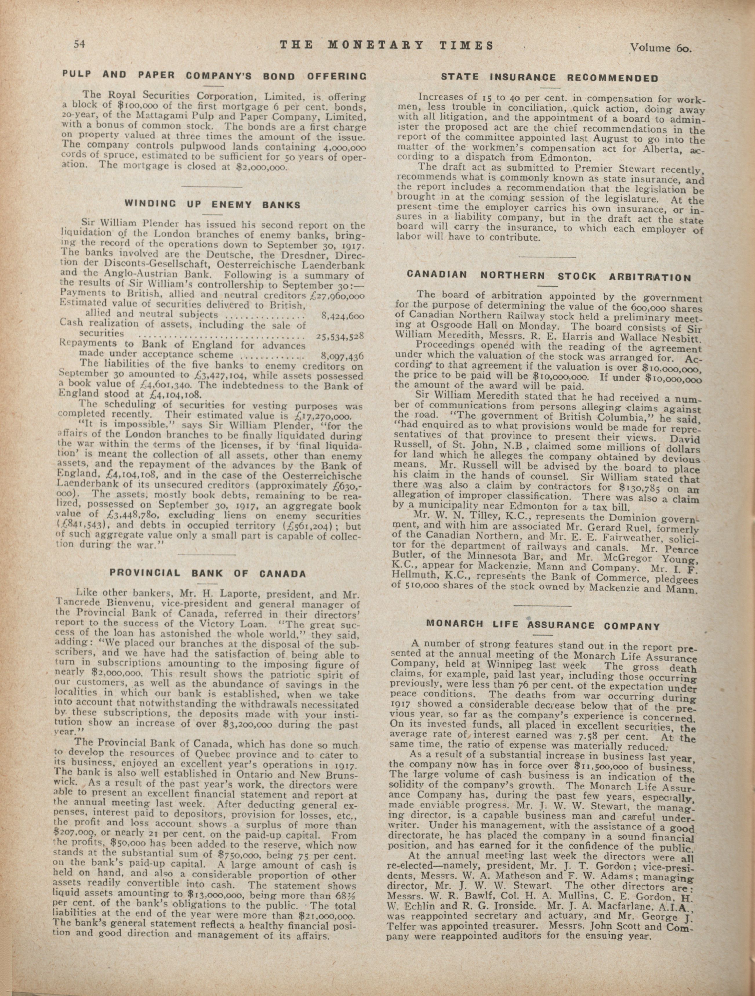 - The Monetary Times, trade review and insurance chronicle. : Volume 60 No. 5 (February 1, 1918)
