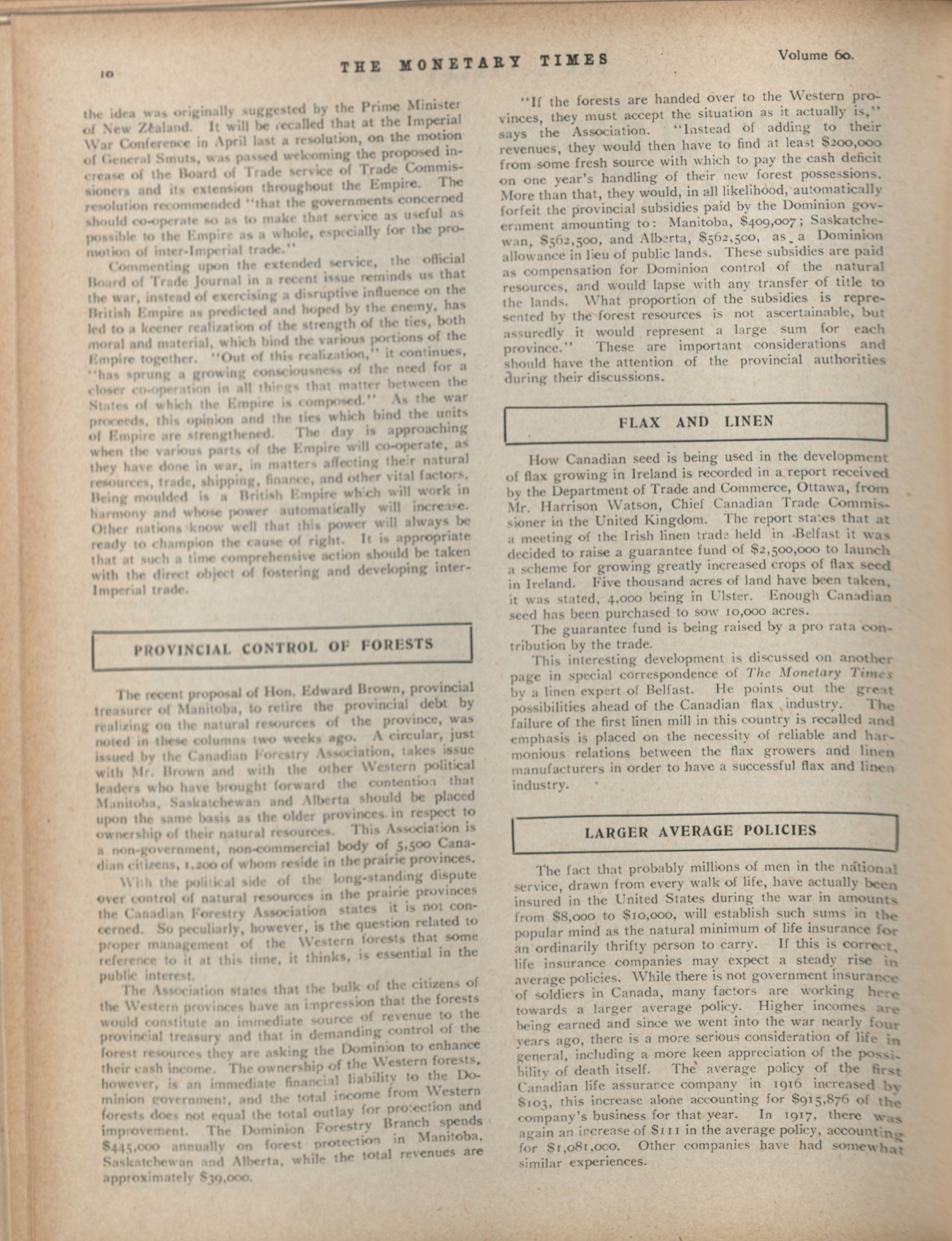 - The Monetary Times, trade review and insurance chronicle. : Volume 60 No. 10 (March 8, 1918)