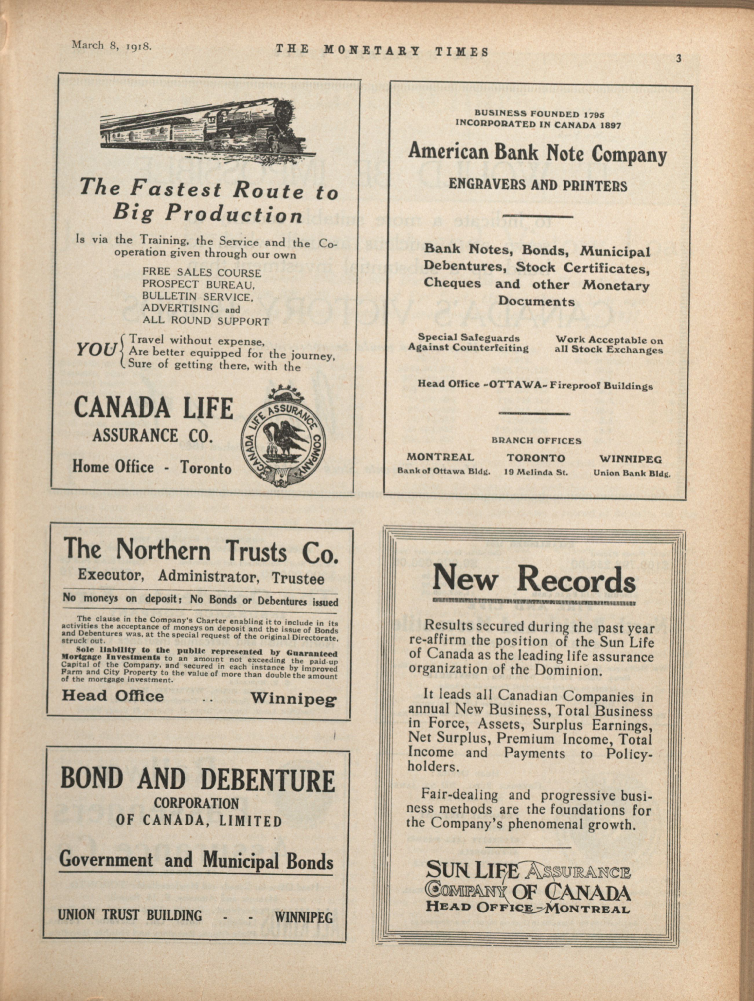 - The Monetary Times, trade review and insurance chronicle. : Volume 60 No. 10 (March 8, 1918)