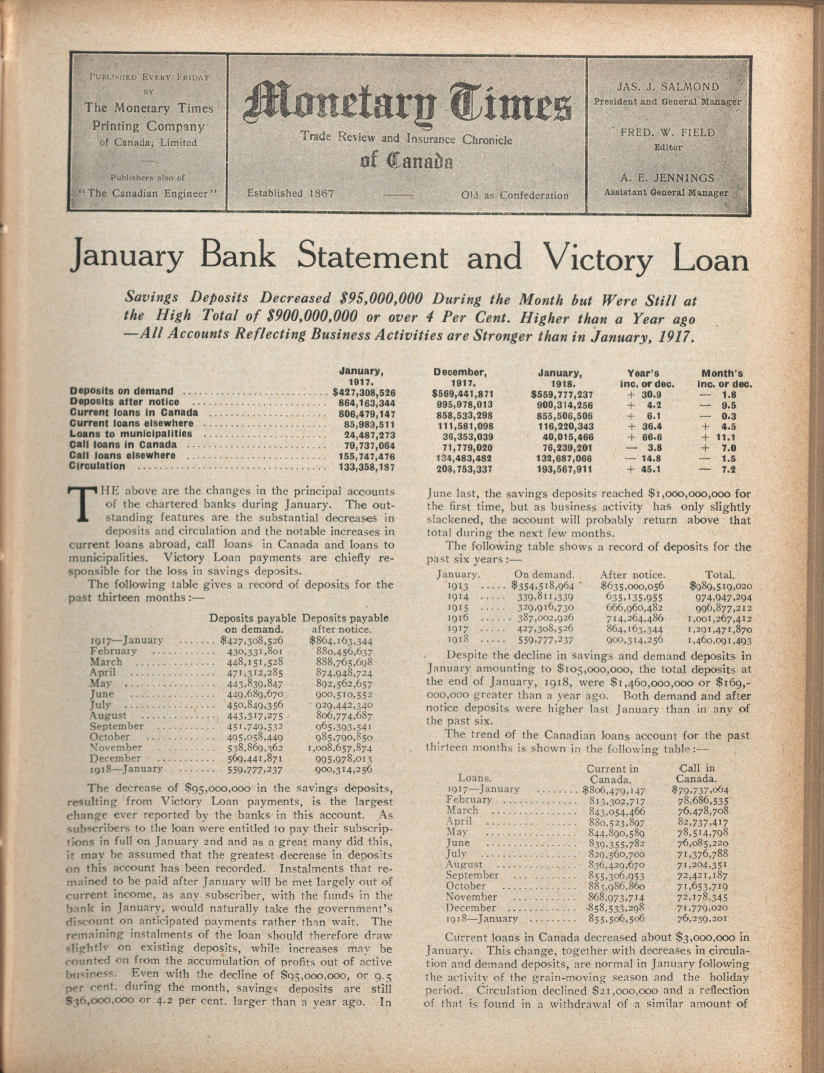 - The Monetary Times, trade review and insurance chronicle. : Volume 60 No. 10 (March 8, 1918)