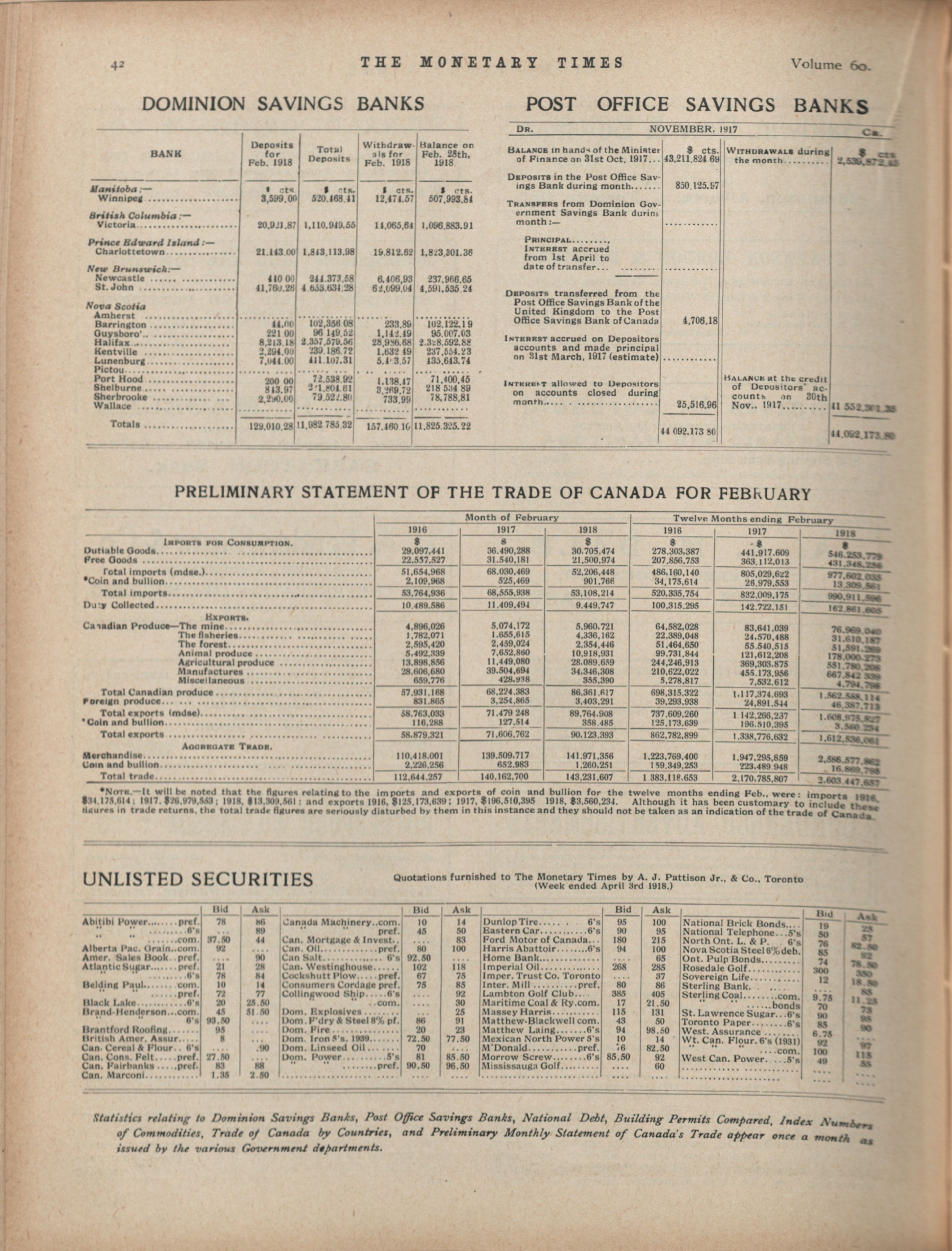 - The Monetary Times, trade review and insurance chronicle. : Volume 60 No. 14 (April 5, 1918)