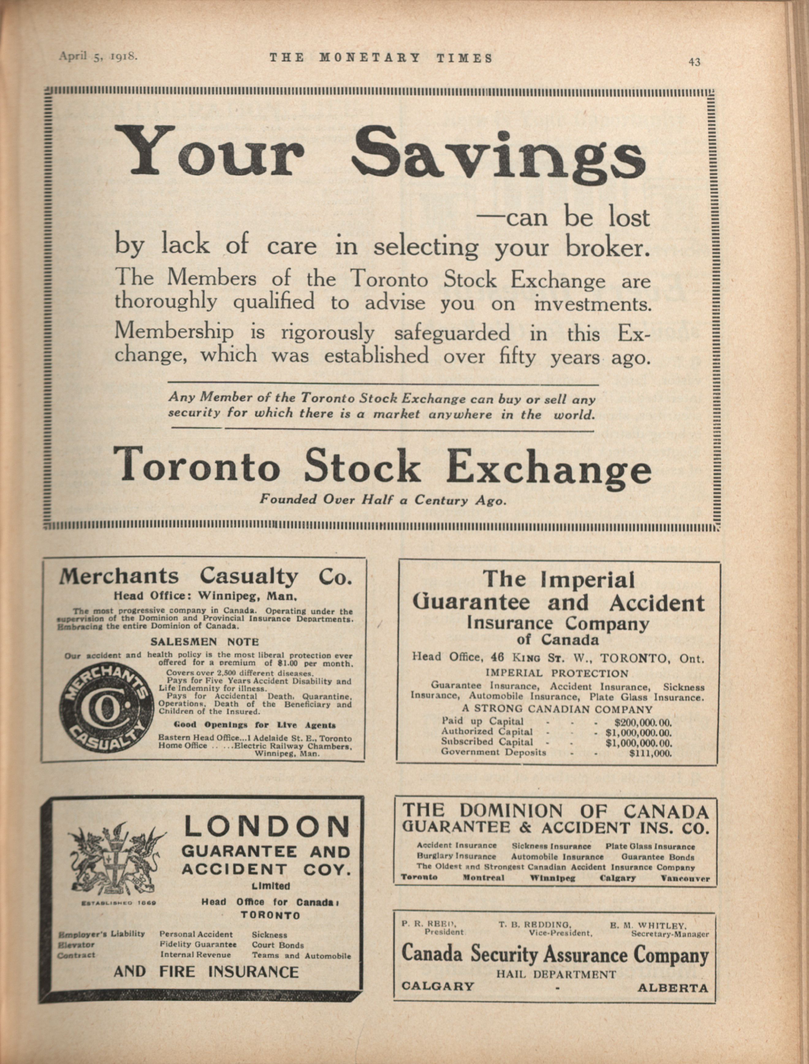 The Monetary Times, trade review and insurance chronicle. : Volume 60 No. 14 (April 5, 1918)