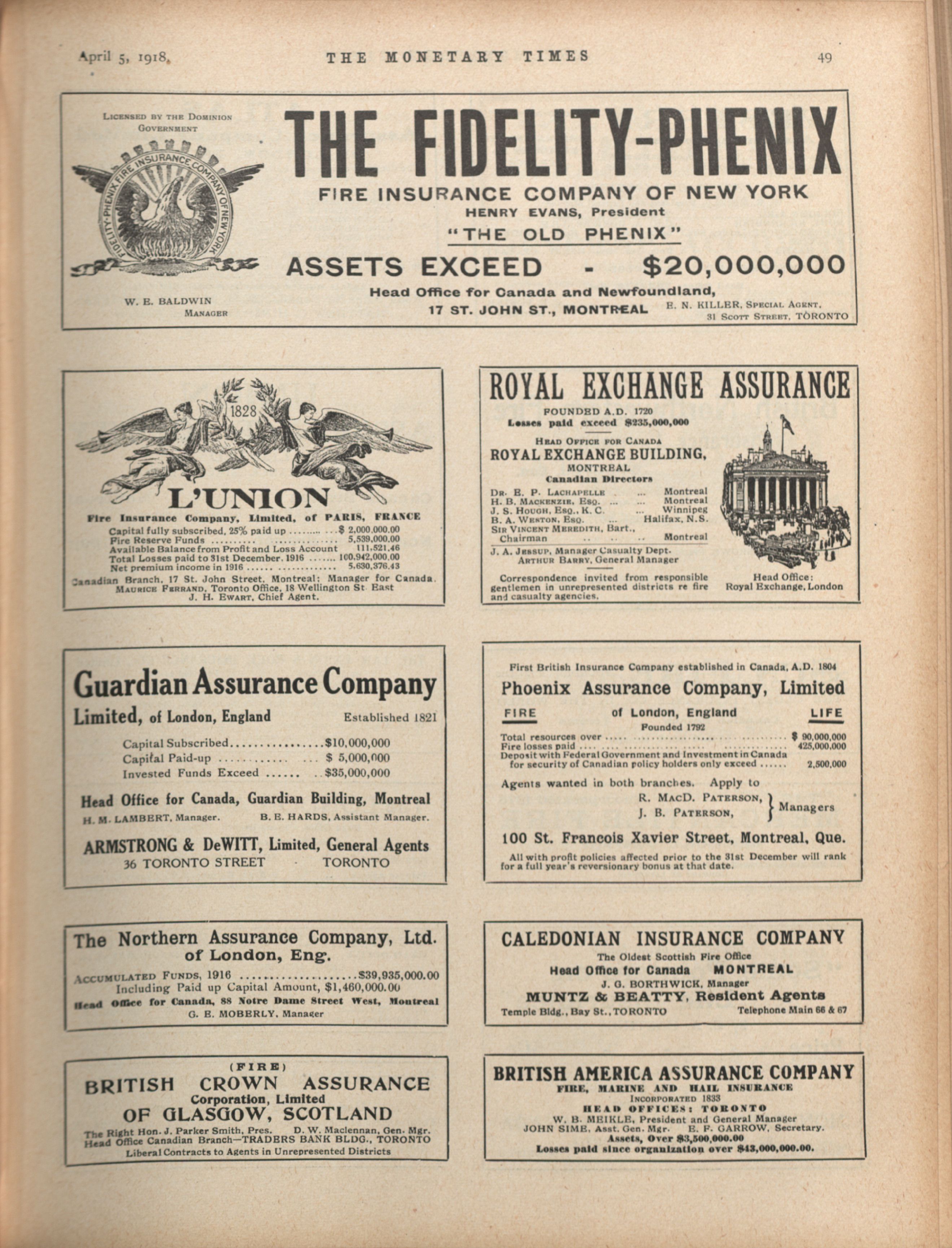 The Monetary Times, trade review and insurance chronicle. : Volume 60 No. 14 (April 5, 1918)