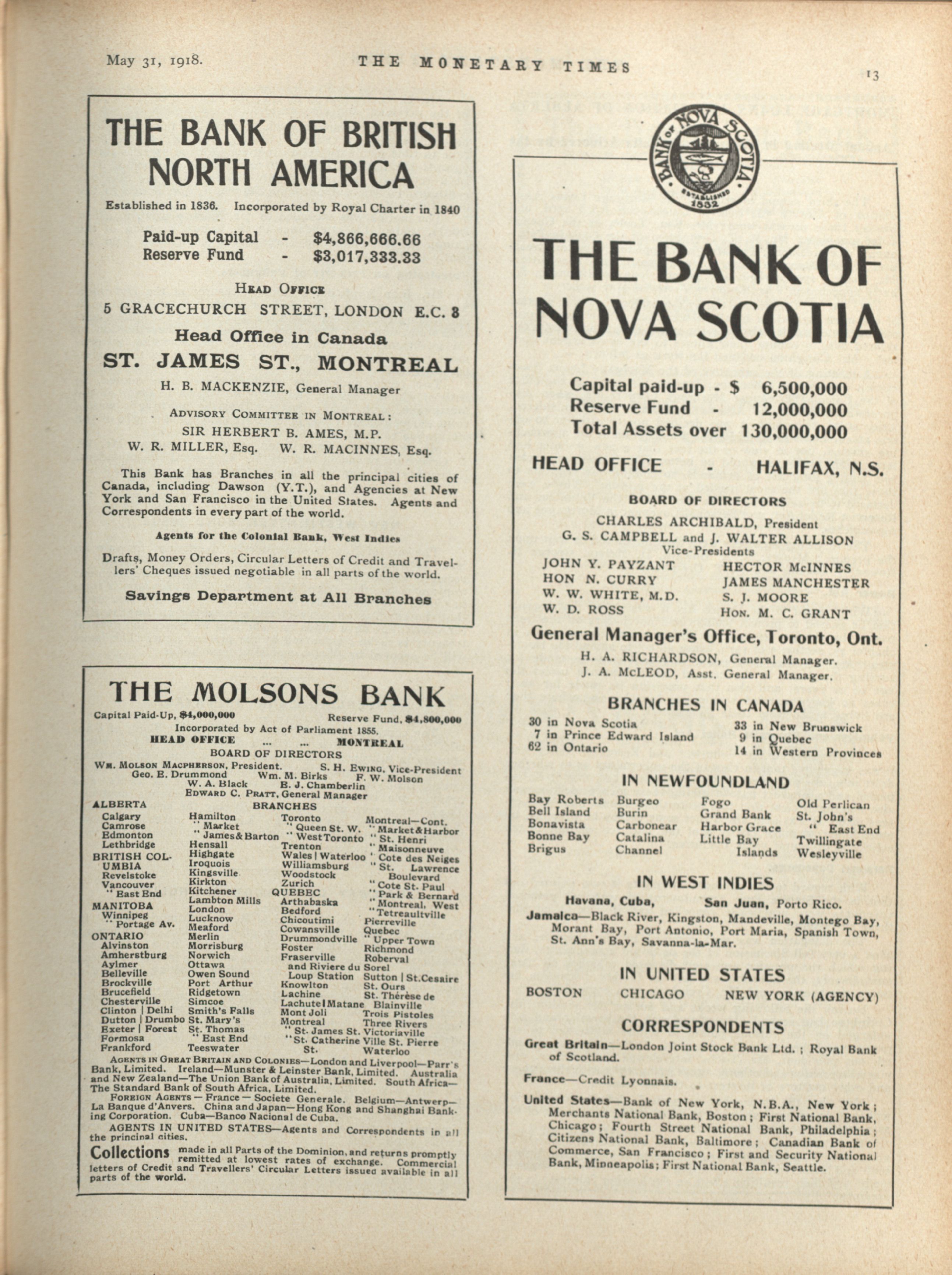 The Monetary Times, trade review and insurance chronicle. : Volume 60 No. 22 (May 31, 1918)