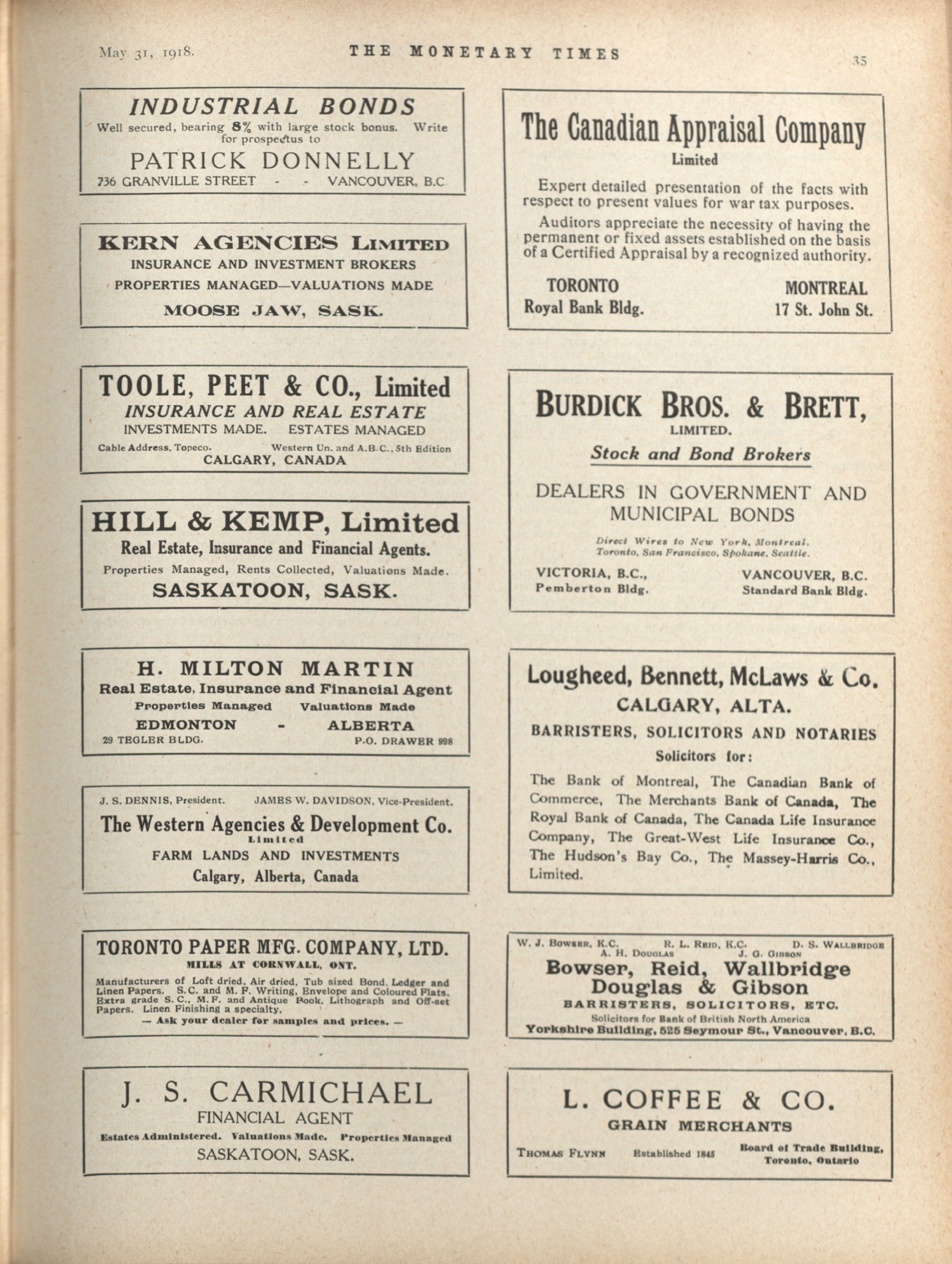 The Monetary Times, trade review and insurance chronicle. : Volume 60 No. 22 (May 31, 1918)