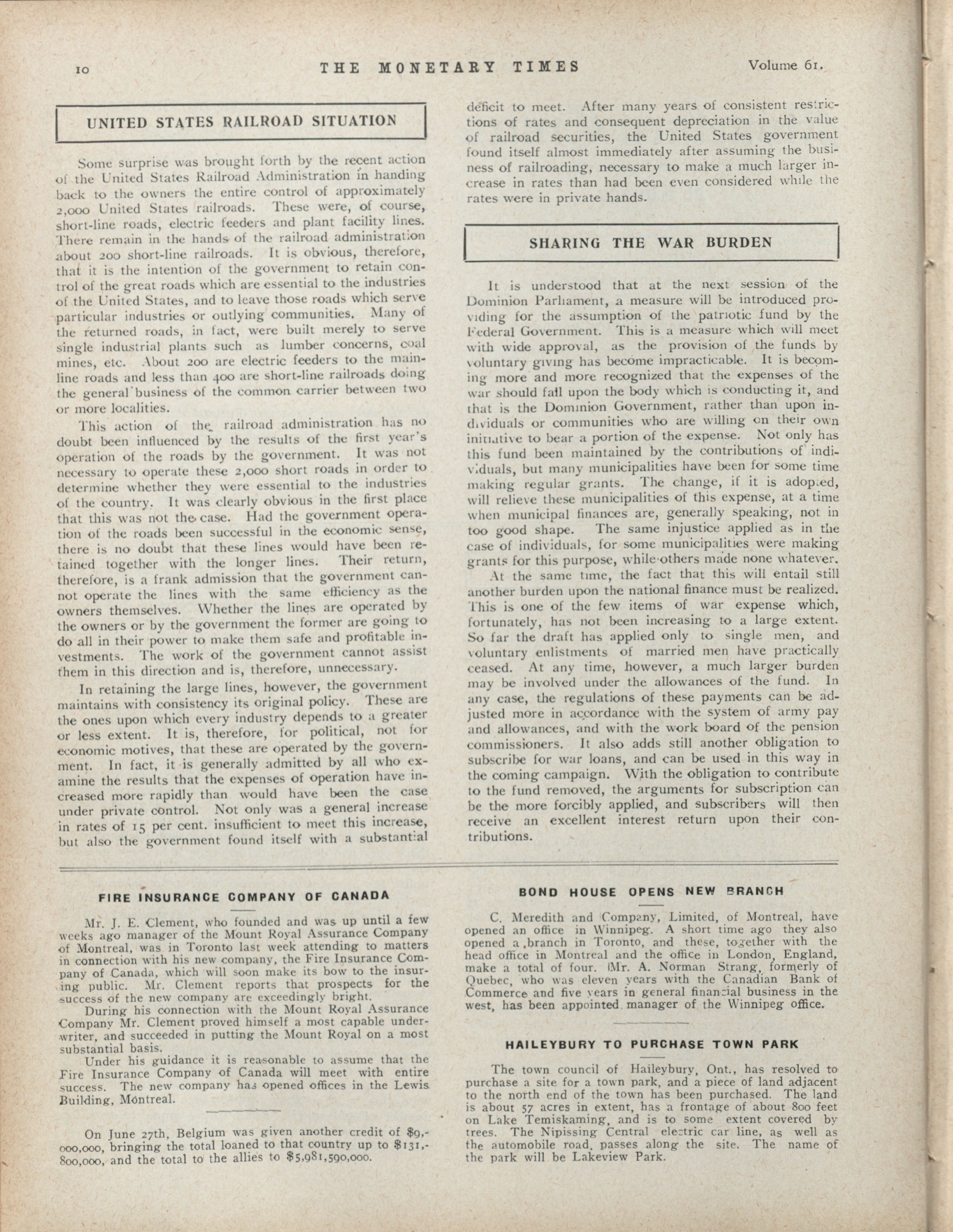 - The Monetary Times, trade review and insurance chronicle. : Volume 61 No. 2 (July 12, 1918)