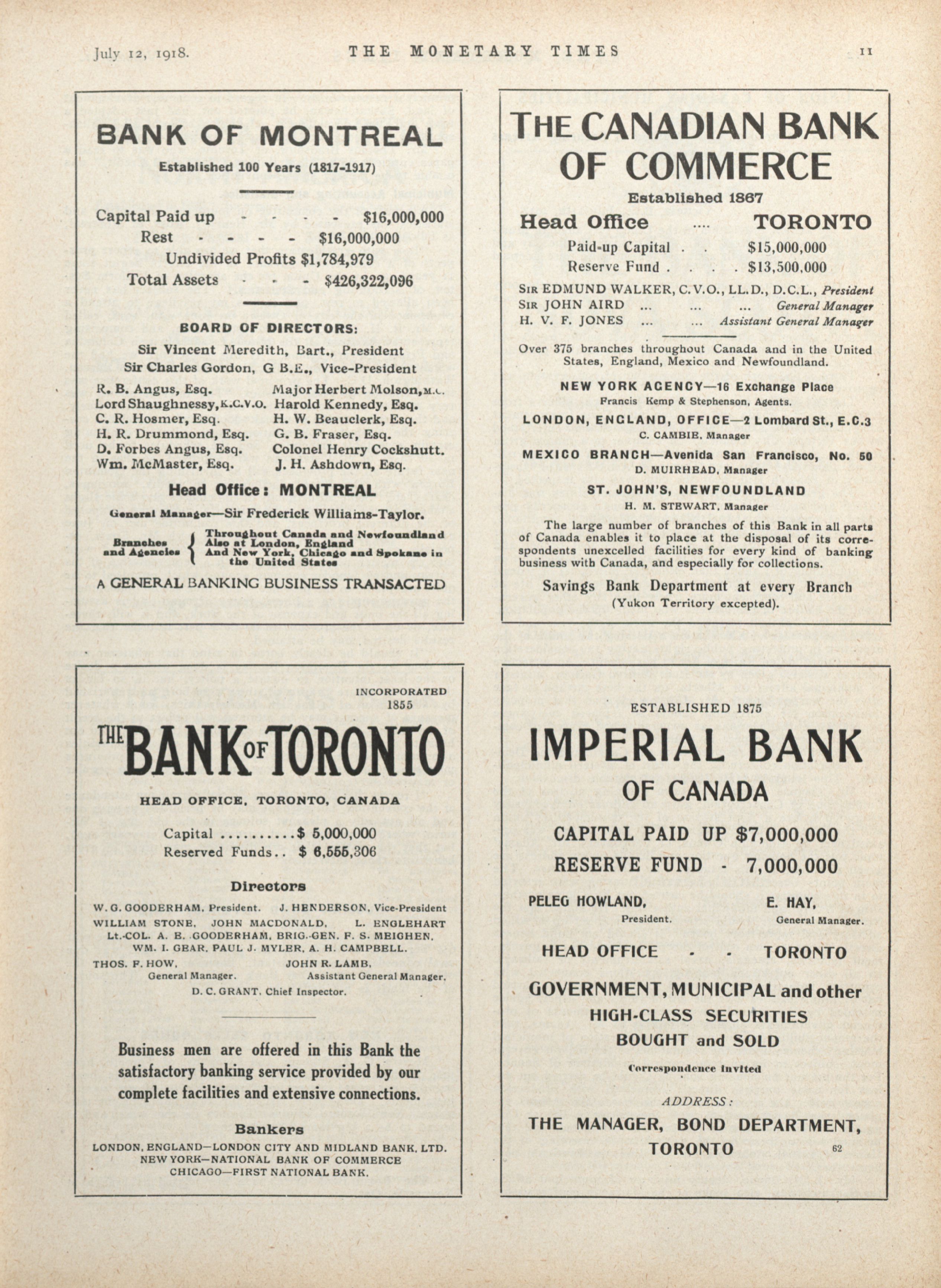 - The Monetary Times, trade review and insurance chronicle. : Volume 61 No. 2 (July 12, 1918)