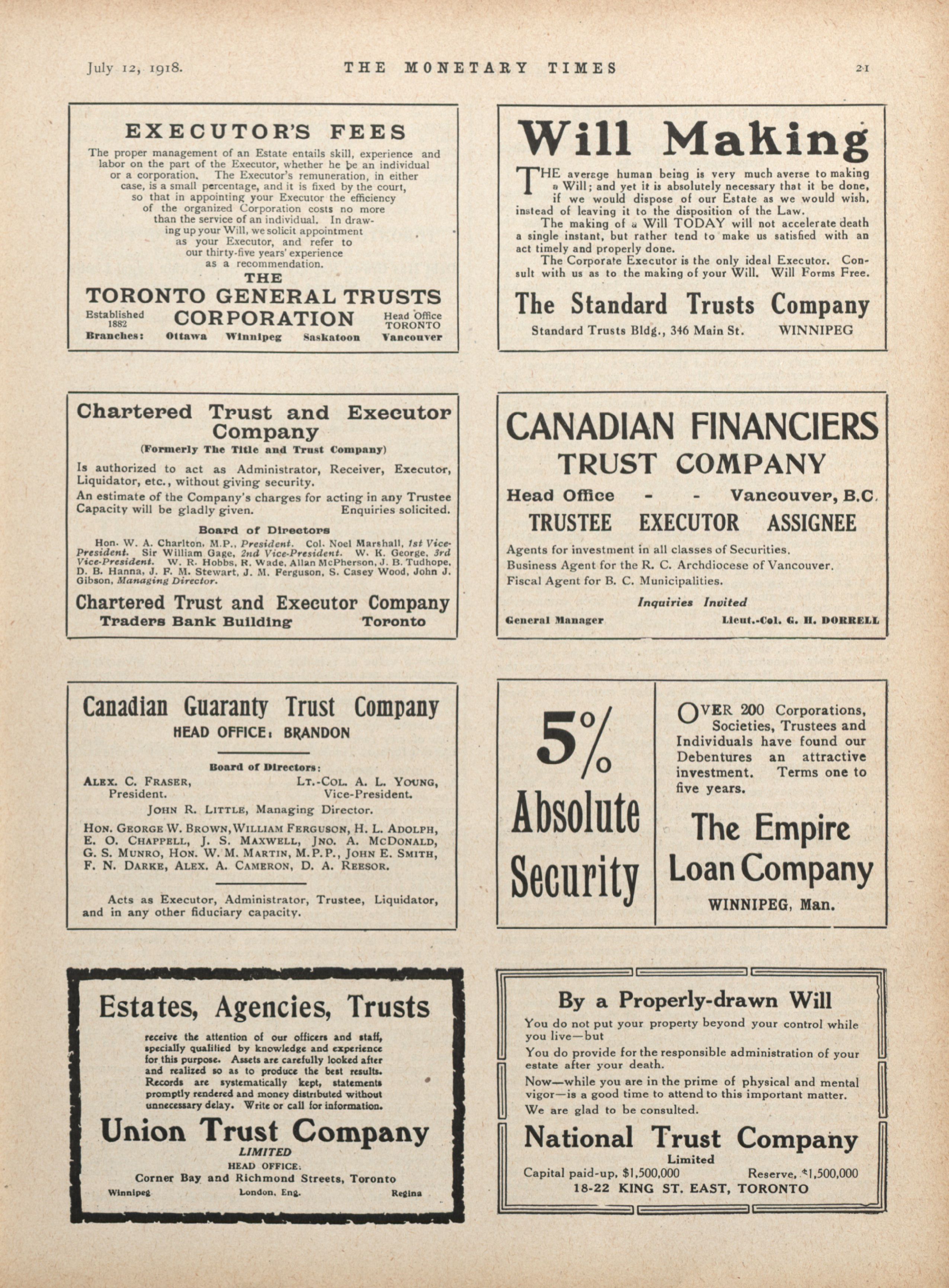 - The Monetary Times, trade review and insurance chronicle. : Volume 61 No. 2 (July 12, 1918)