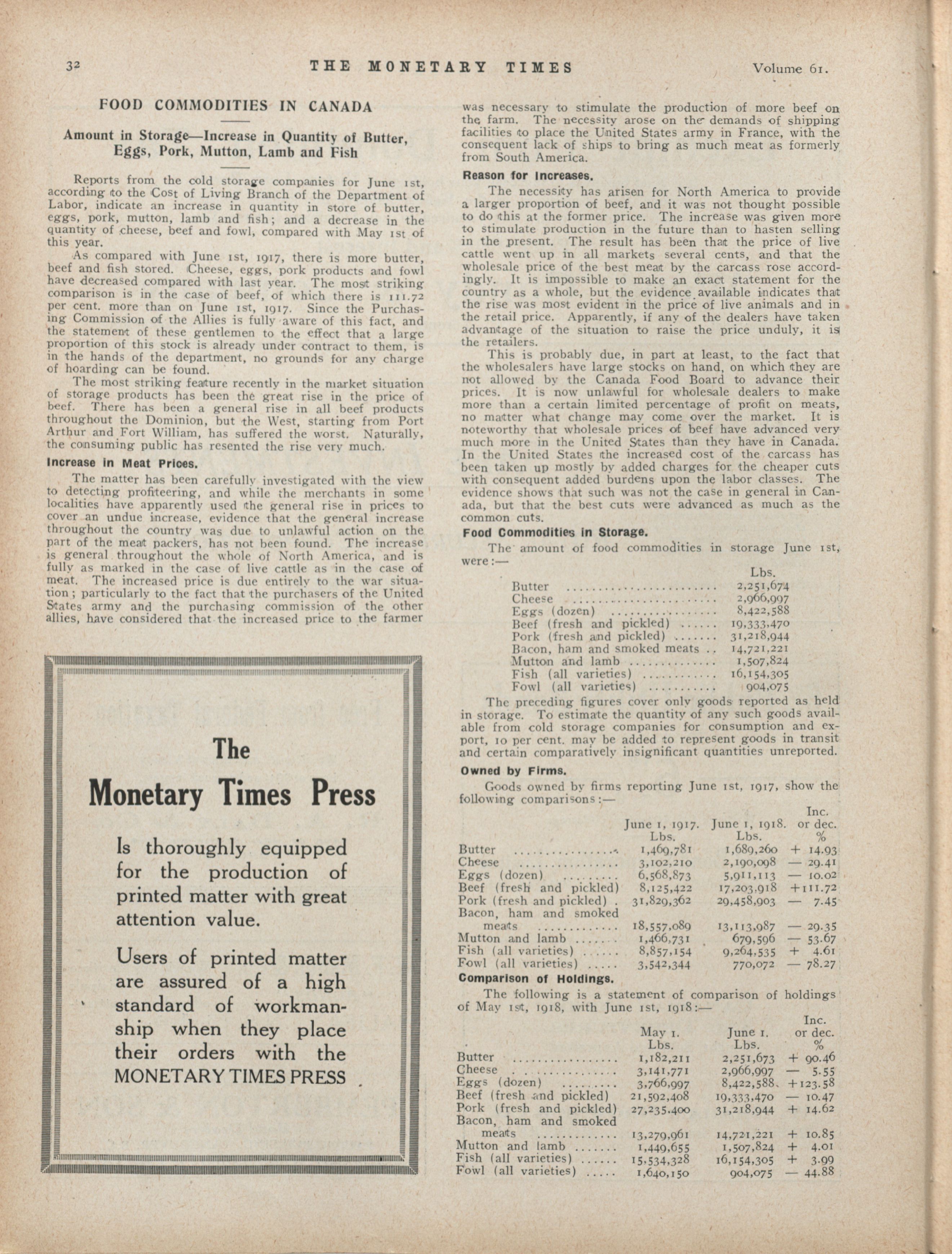 - The Monetary Times, trade review and insurance chronicle. : Volume 61 No. 2 (July 12, 1918)